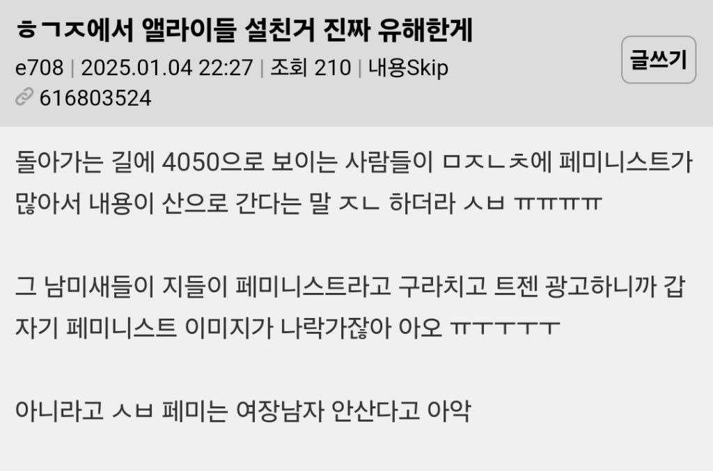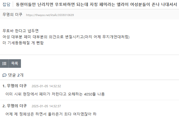 여초에서 항의했지만 피드백 없음