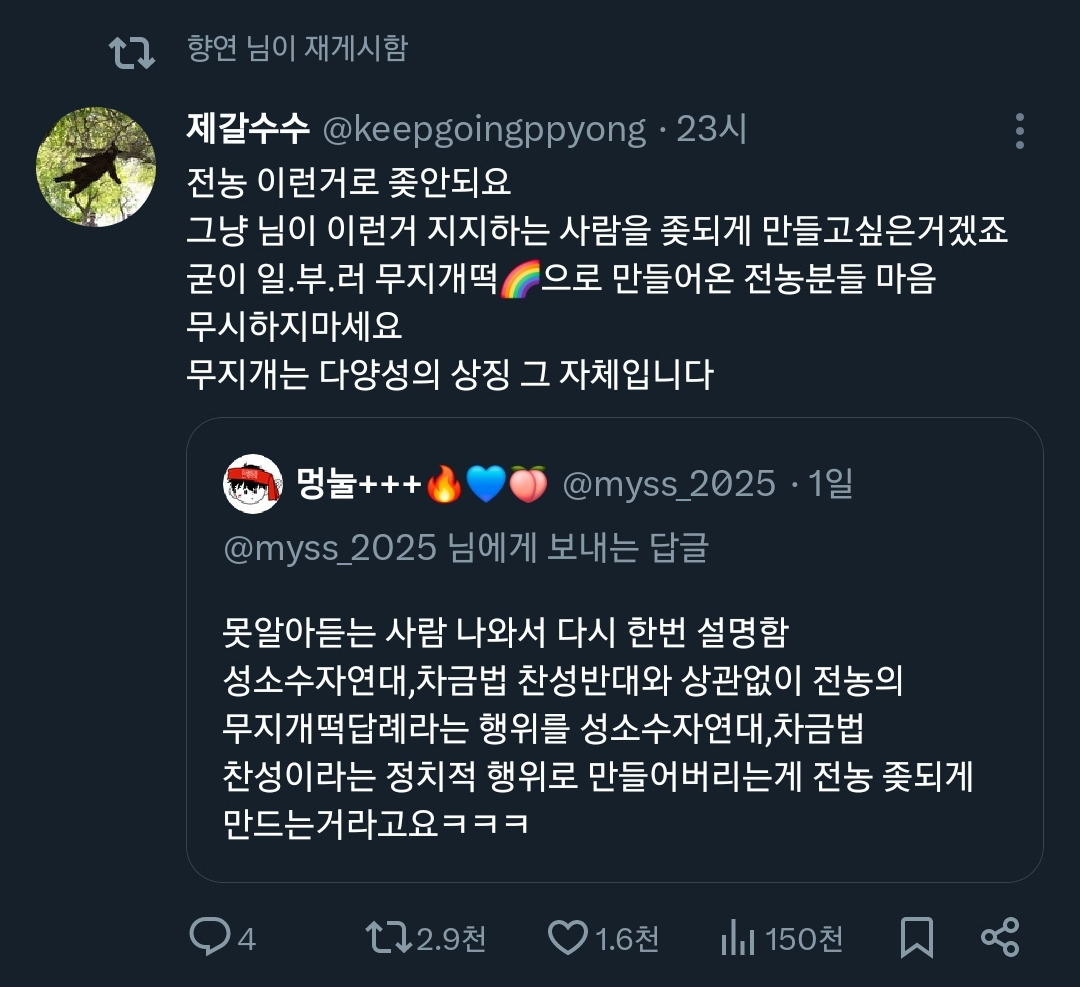 사람들이 항의하니까 <성소수자는 그 무엇도 빼앗지 않았고> 라고 했는데