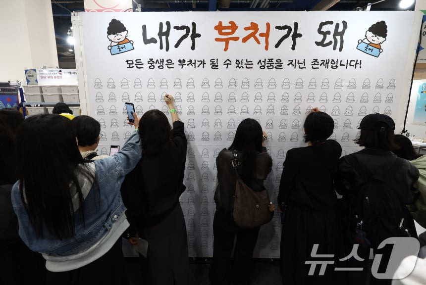 (서울=뉴스1) 김민지 기자 = 2일 오전 서울 강남구 코엑스에서 열린 '2026 서울국제불교박람회 & 제14회 붓다아트페어'에서 관람객들이부처님 그림을 그리고 있다.