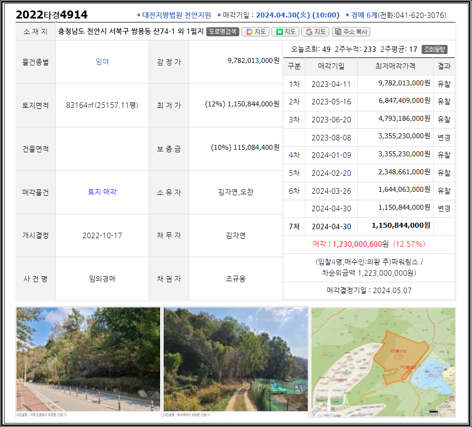 (천안경매학원) ~~축낙찰~~ 쌍용동 임야 낙찰~~ 작성자박병섭|작성시간24.04.30|조회수44 목록 댓글 0 글자크기 작게가 글자크기 크게가 (천안경매학원) ~~축낙찰~~ 쌍용동 임야 낙찰~~ 지난주 추천물건인 쌍용동 임야를화요일 오후반 최진일님 법인명으로 낙찰을 받으셨습니다. 축하드립니다. 좋은 수익으로 이어질 수 있도록 기원합니다. 다음검색 현재 게시글 추가 기능 열기 북마크 신고 센터로 신고 댓글 댓글 0 댓글쓰기 답글쓰기 댓글 리스트