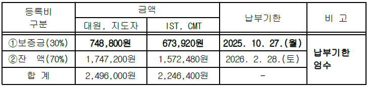 2) 2차 신청자 중 등록비(보증금 30%)를 납부하지 않은 자는 자동으로 3차 참가자로 이관되며, 3차 한국대표단 모집 이후 추가 모집 없음.