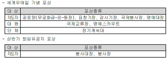 4) 연맹 포상규정 제5조(이중 포상의 금지)와 관련, 포상이 중복 추천되지 않도록 사전 확인 부탁드립니다.