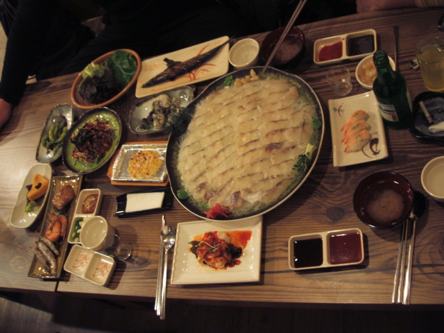 맛나는 우럭한접시,이슬과함게...... 가격이 엄청 착한데 갖출건 다 갖춰서 나옵니다~~ㅎㅎ