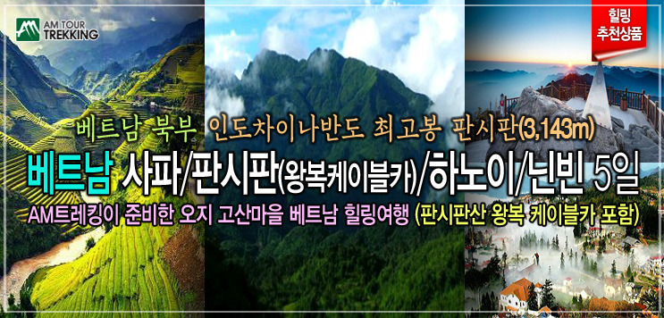 ▷ 비엣젯항공으로 편안한 서비스를 받을 수 있습니다. ▷ 사파 2박(사파호텔), 하노이 1박 일정으로 여행자 거리 최고의 중심 ▷ 세계 최장 판시판산(3,143m) 케이블카 왕복 으로 사파 & 판시판의 모든 것을 즐길 수 있다. ▷ 사파 트레킹 + 관광 (함종산 트레킹 + 소수민족 깟깟마을 문화탐방 및 전통공연 관람) ▷ 사파 시내투어 - 유럽피안거리(여행자거리) ▷ 베트남의 수도 하노이 시내관광 (호안끼엠호수, 재래시장), ▷스트릿카(팁별도) & 전신맛사지 1시간 체험(팁별도) ▷ 육지의 하롱베이 - 닌빈(번롱)지역 관광 (삼판 나룻배) ▷ 7대 특식 제공 - 호텔셋트, 인디고 레스토랑, 샤브샤브, 비엣이모션, 불고기정식, 염소불고기, 웰빙쌈밥 등
