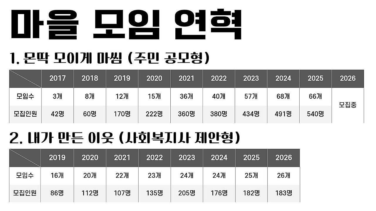 다음은 마을 모임 연혁을 소개했습니다.