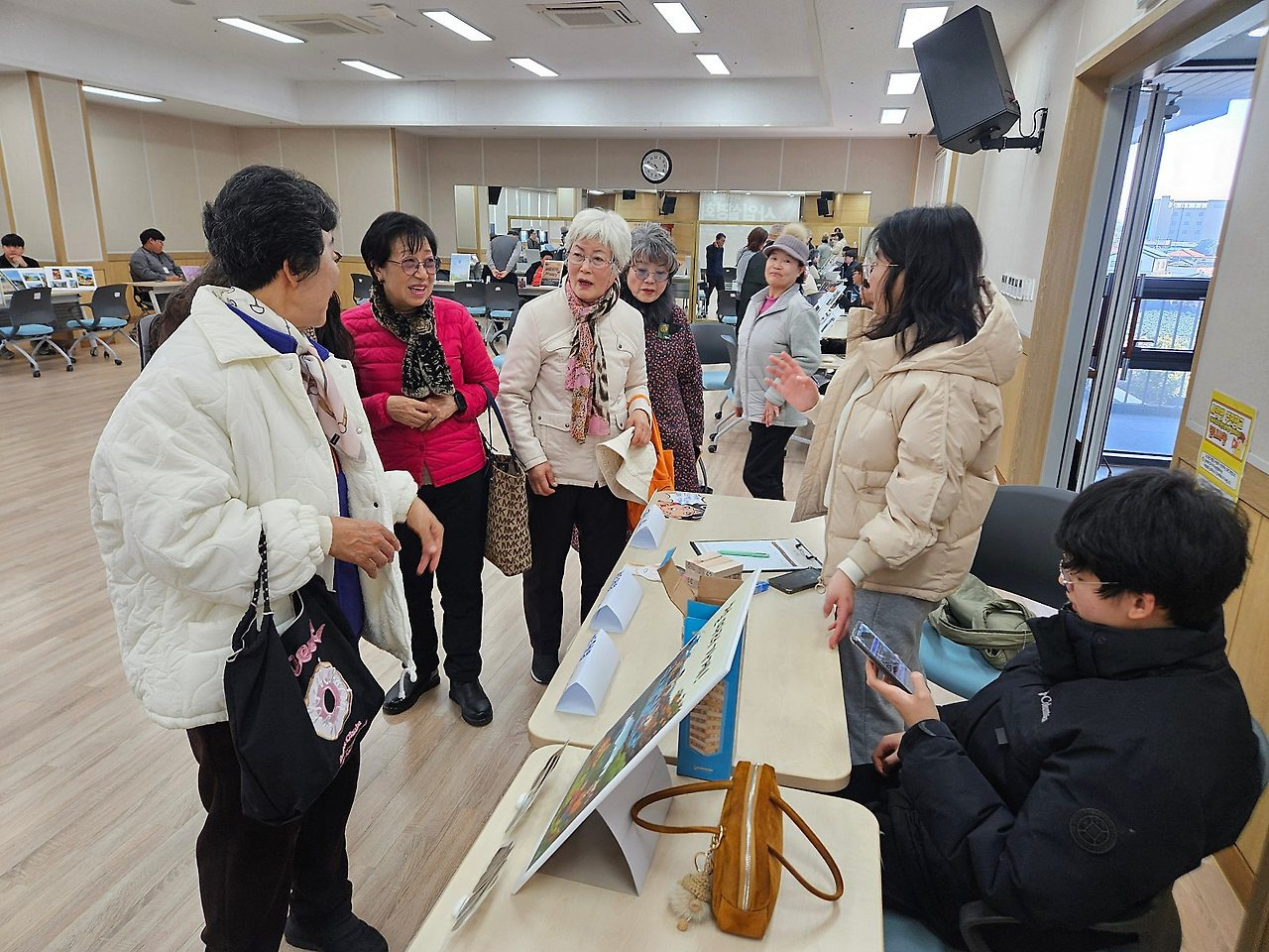 부스 운영을 맡은 당사자와 사회사업가가 자리에 먼저 앉고, 지역 주민이 돌아다니며 부스를 구경합니다.