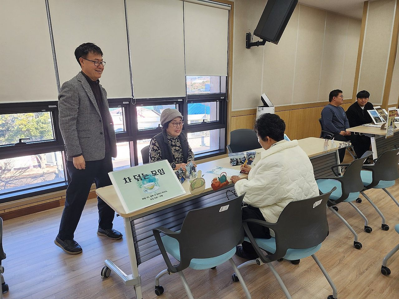 "계속 쳐다보시는 거 보니까 모임에 관심이 있으신 것 같은데!"