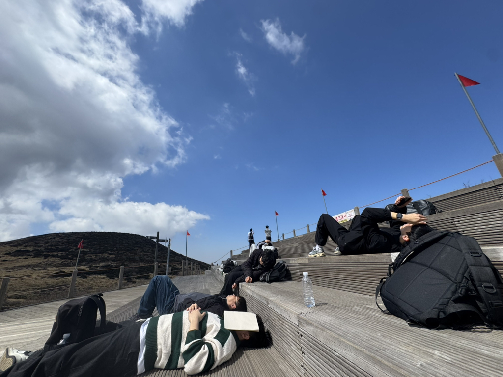 이후 바람을 피해 쉼터에서 잠시 휴식을 취하고, 따뜻한 햇살 아래 누워 여유를 느꼈습니다.