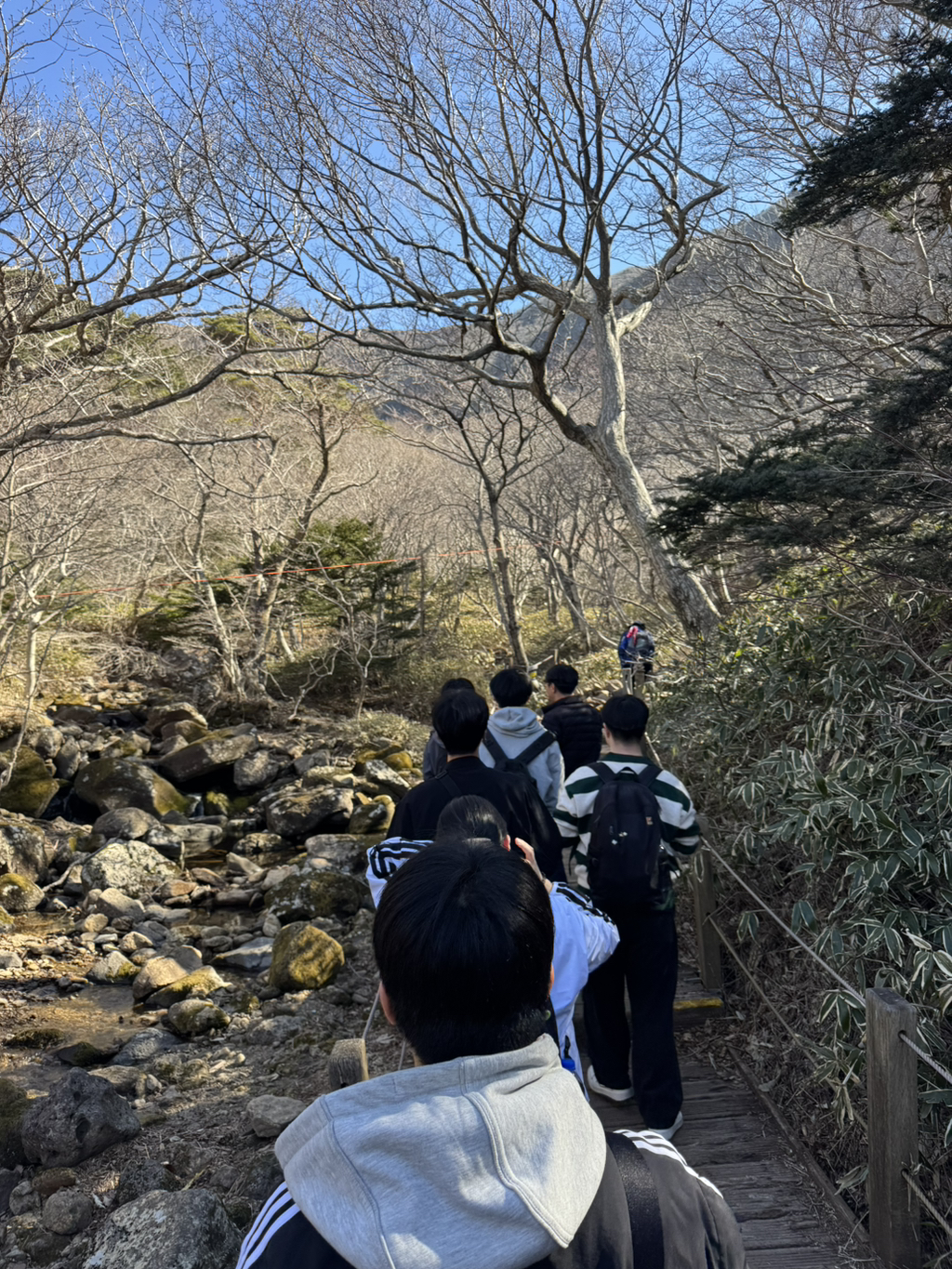 두 명씩 짝을 이루어 산을 올랐습니다. 곳곳에 남아 있는 눈과 옆으로 흐르는 계곡물, 그리고 맑은 공기 속에서 자연을 느끼며 걸었습니다. 좋은 날씨, 좋은 선생님, 좋은 동료들과 함께하는 길이었습니다.