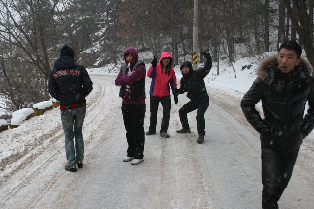 명철선생님 강의를 듣고 출발하려고 했는데 눈발이 더욱 거세게 날렸습니다.