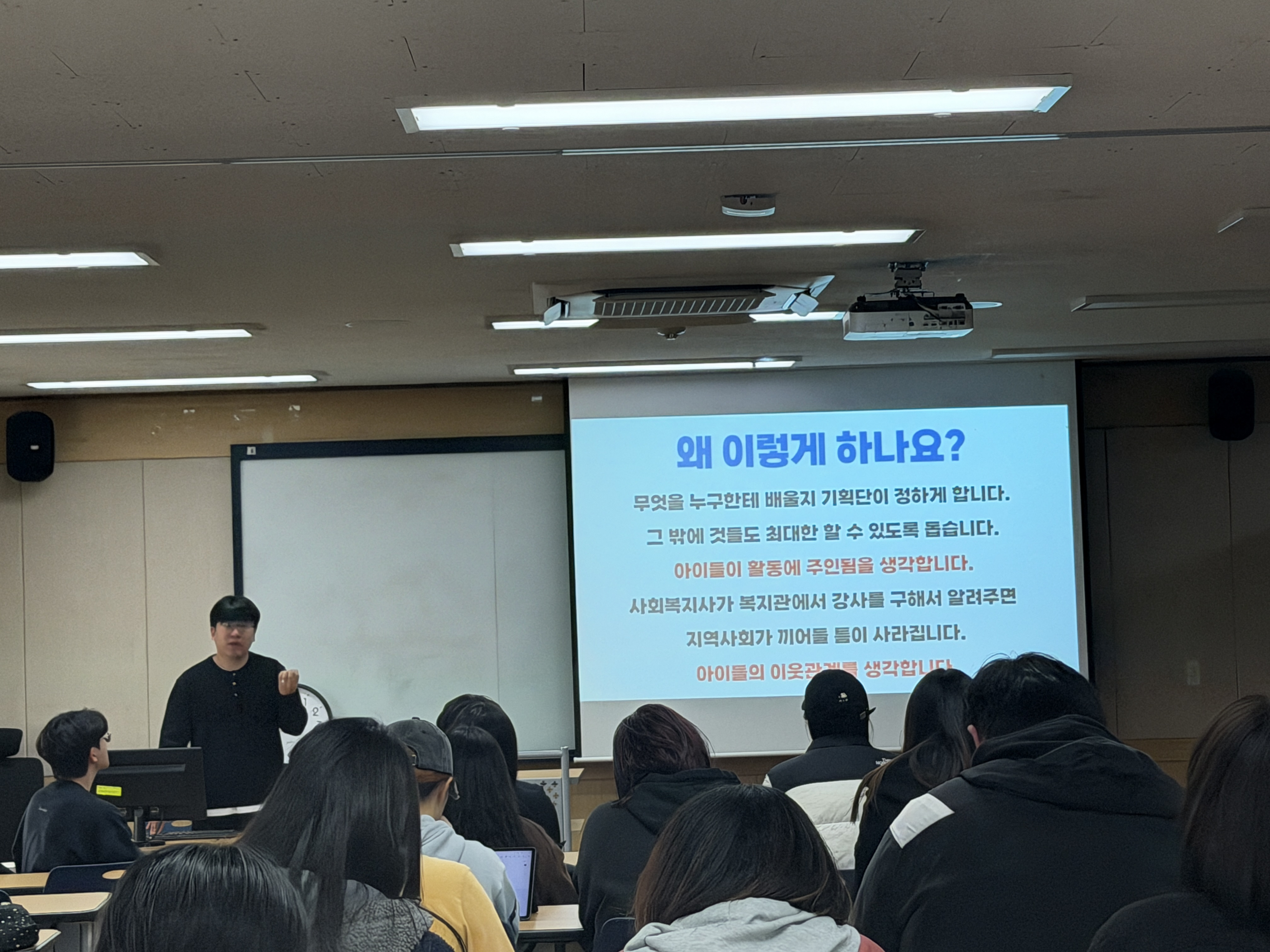 단기사회사업이 무엇인지, 사회사업이 무엇인지 모르는 학생들에게 마을영화제, 골목여행, 마을선생님 세 가지 사례가 이해에 큰 도움이 되었으리라 생각합니다.