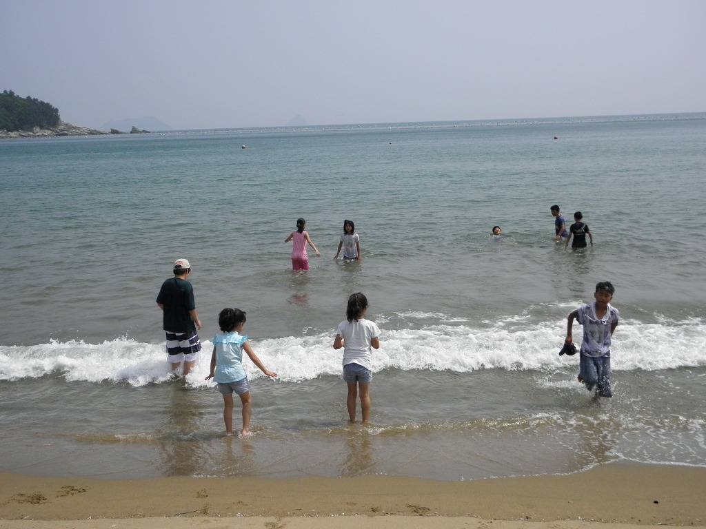 바다에 도착하자 아이들은 마치 물 만난 고기 마냥 바다를 향해 뛰어 들어갔다. 물론 준비운동도 아이들과 선생님들 빠짐없이 했다. 역시나 바다는 아이나 어른을 구별하지 않고 좋아하는 것 같았다. 아니면 바다가 어른과 아이들을 구별하지 않고 모두를 좋아해 주는 것은 아닐까? 오늘은 정말로 아이들이 부러웠다. 어릴 적 아픈 몸으로 뛰어놀지 못했던 나의 어린 시절을 생각하니 지금 수영하고 물장구치는 아이들이 너무나도 부러웠다.