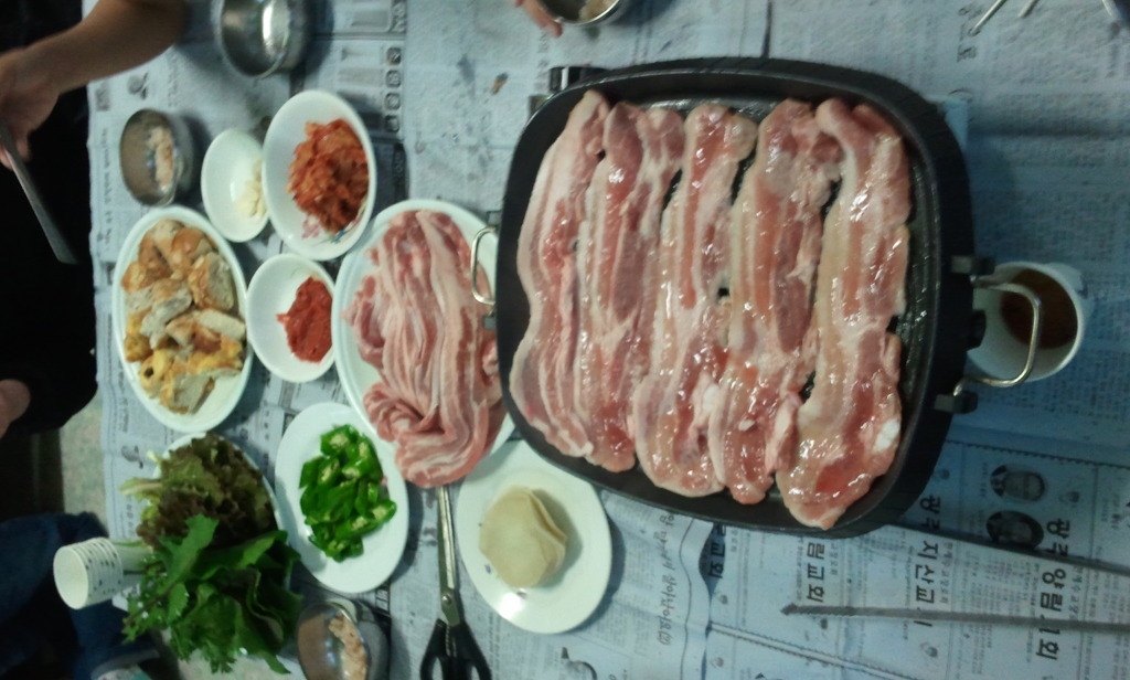 그래서 미리 삼겹살 파티를 하기로 했습니다.
