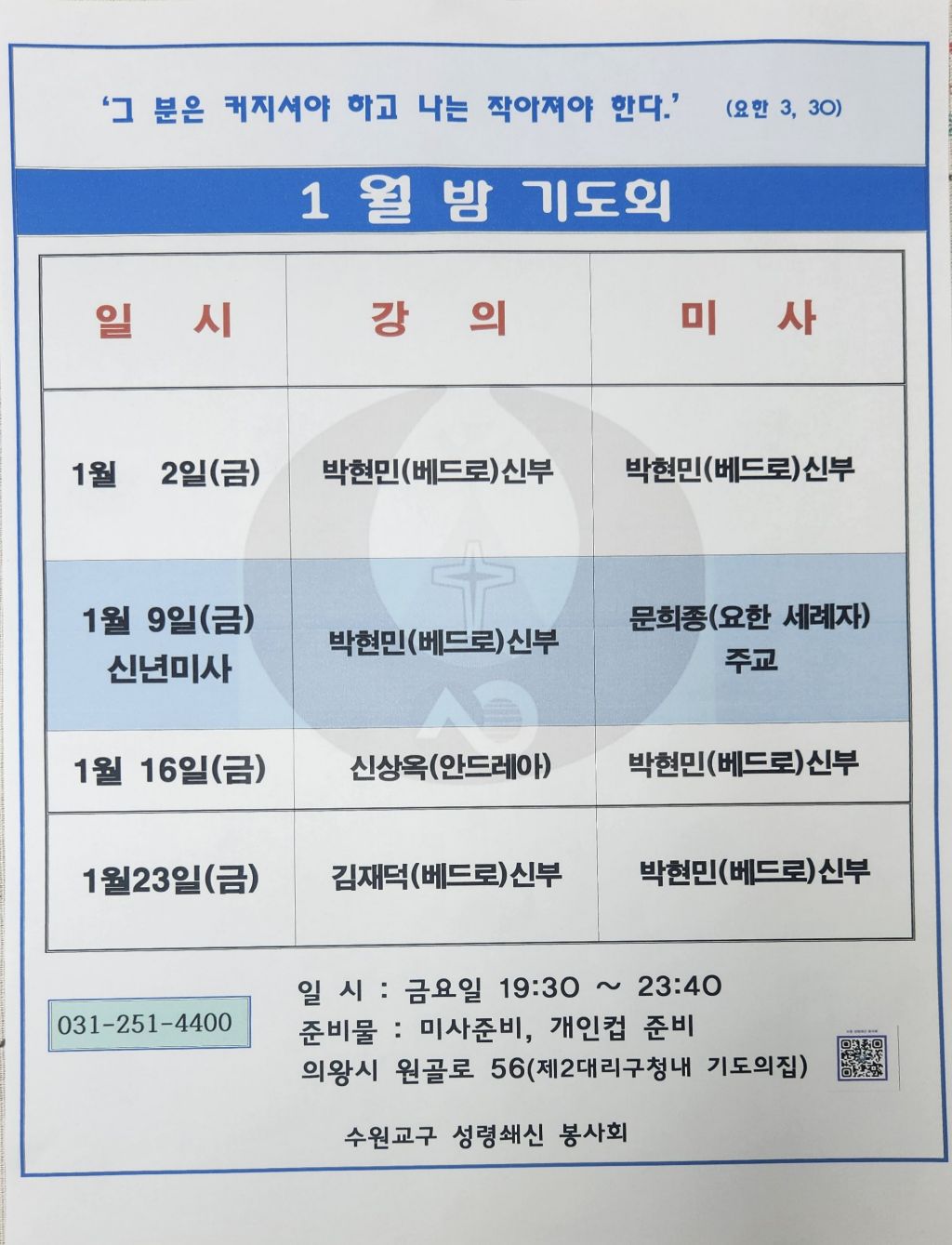 2026년 1월 밤기도회 작성자클라우디아|작성시간25.12.19|조회수37 목록 댓글 0 글자크기 작게가 글자크기 크게가 다음검색 현재 게시글 추가 기능 열기 북마크 공유하기 신고 센터로 신고 댓글 댓글 0 댓글쓰기 답글쓰기 댓글 리스트