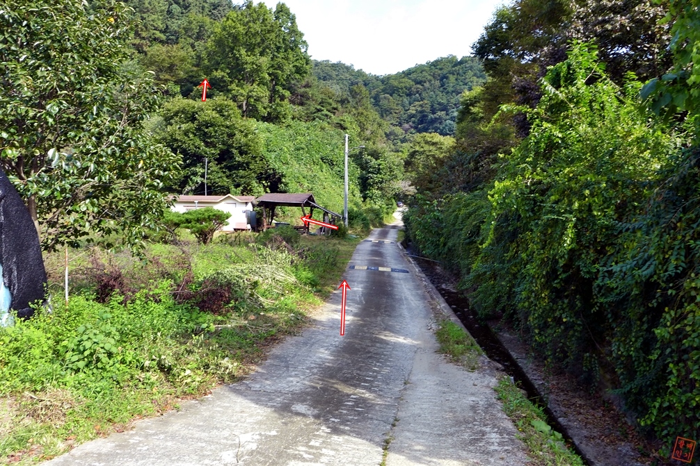 정자 뒷편 길로 향하다.