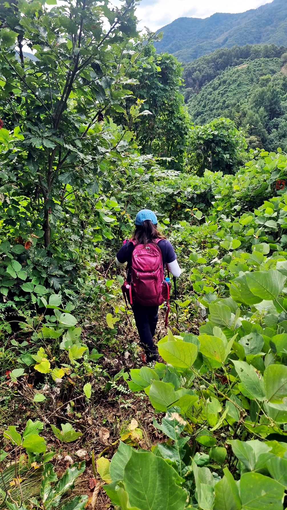 과거 벌목되었던 동남쪽 방향으로 하산.