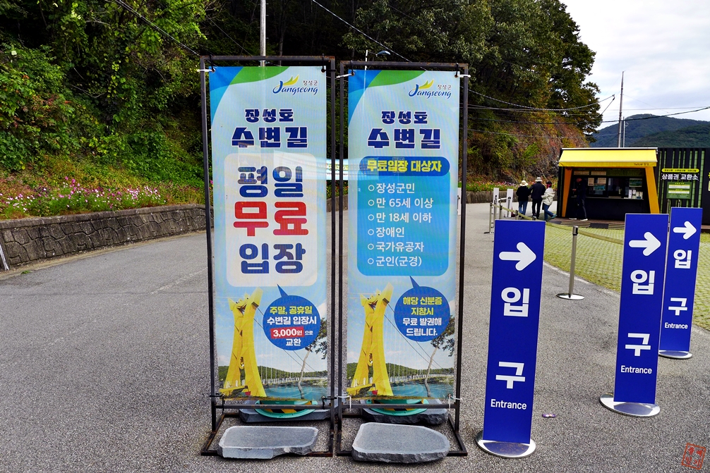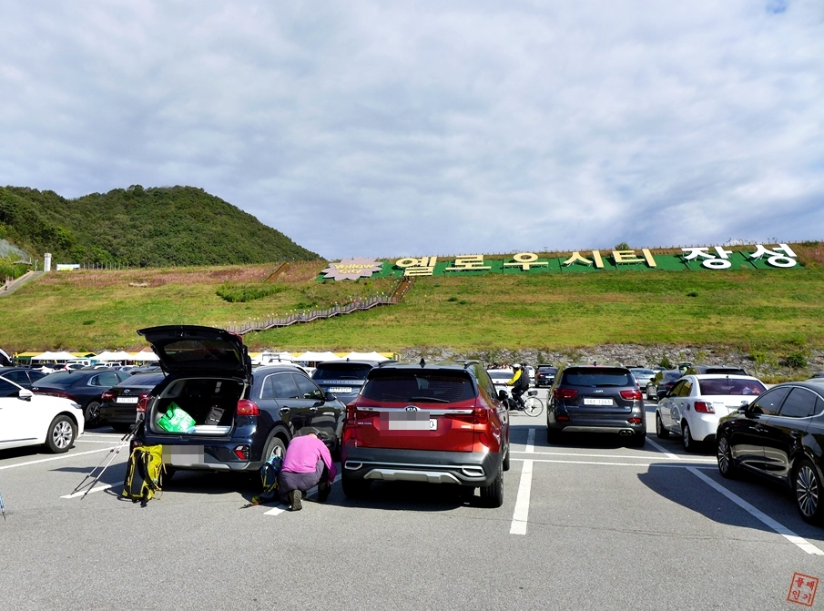 장성호수변길 주차장에 차량주차.
