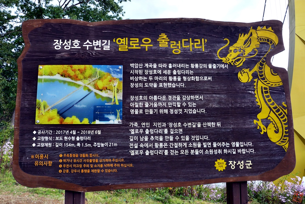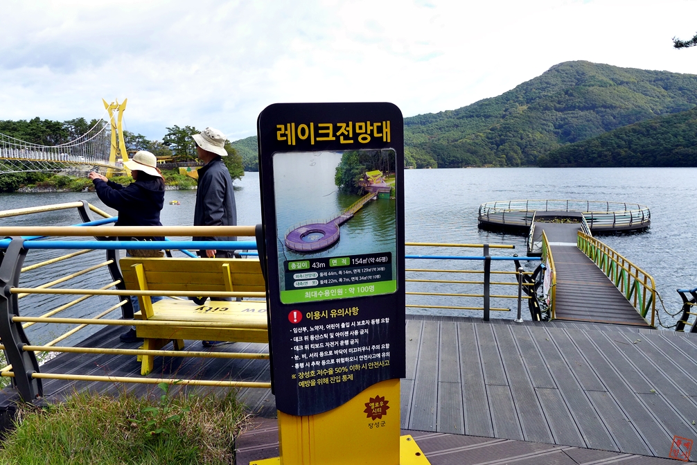 관광지로 선정되었다. 호숫가 가파른 절벽을 따라 세운 나무 데크 다리에서는 한 폭의 그림처럼 아름다운 탁 트인 장성호의