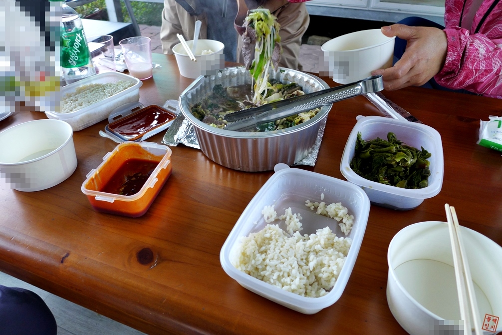 수성황토방민박 사장께서 양해를 구해 식사공간을 빌리기로 하다.