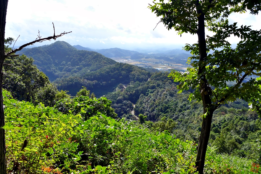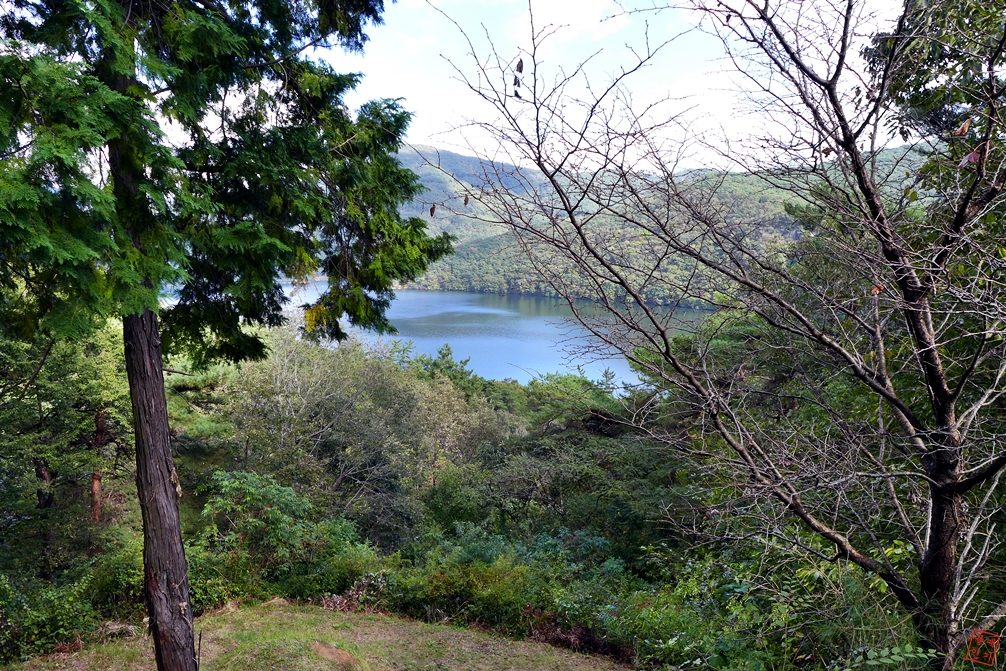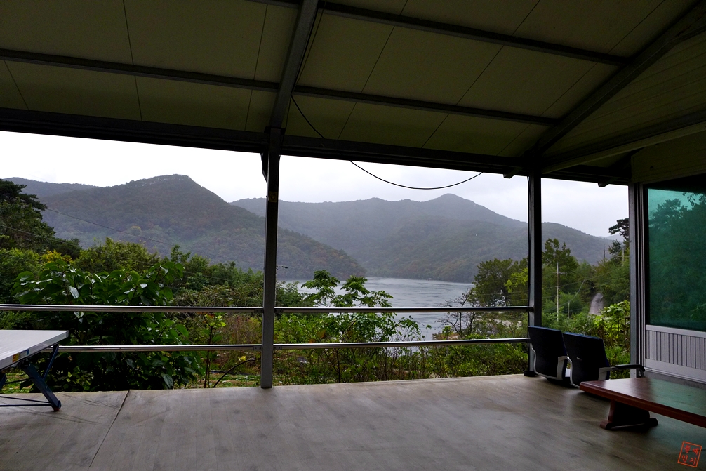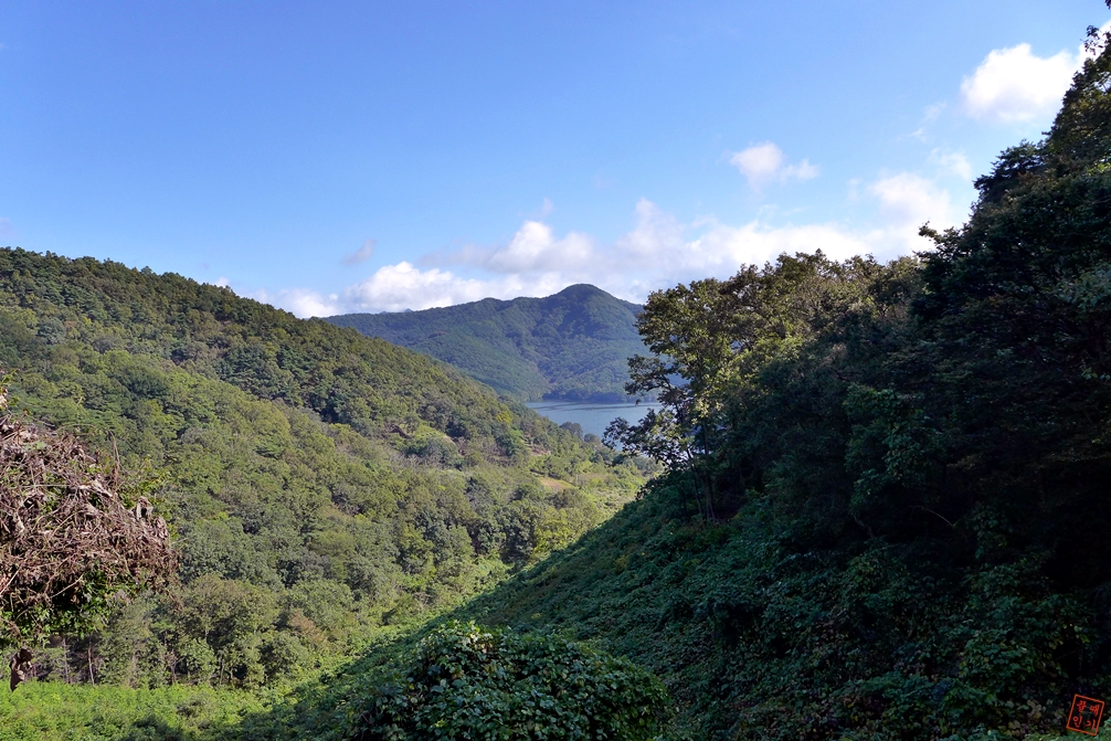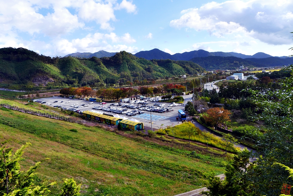 처음 출발했던 장성호수변길 주차장을 바라보다.