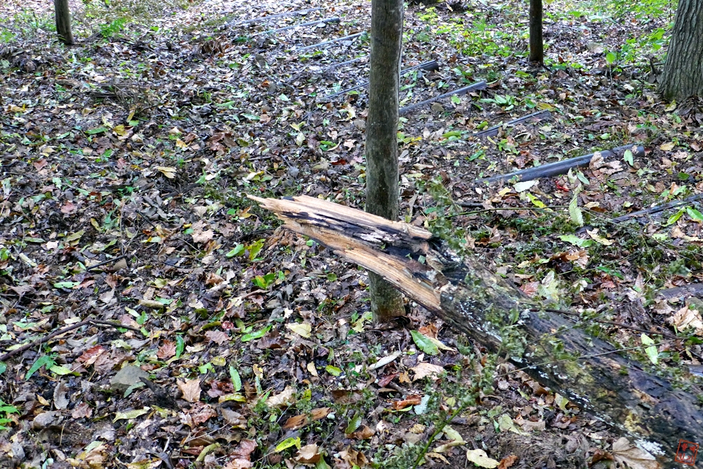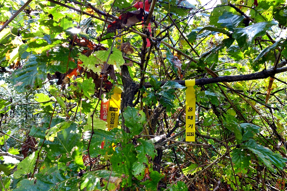 벼락에 맞아 나무가 부러진 흔적 발견.