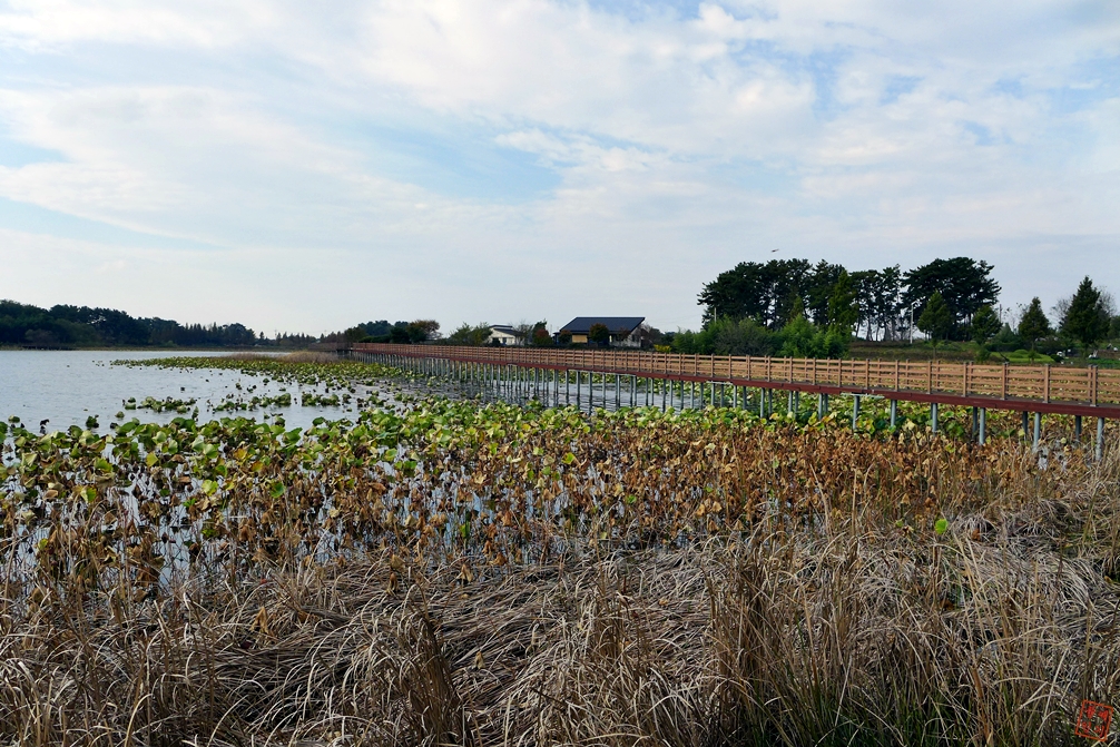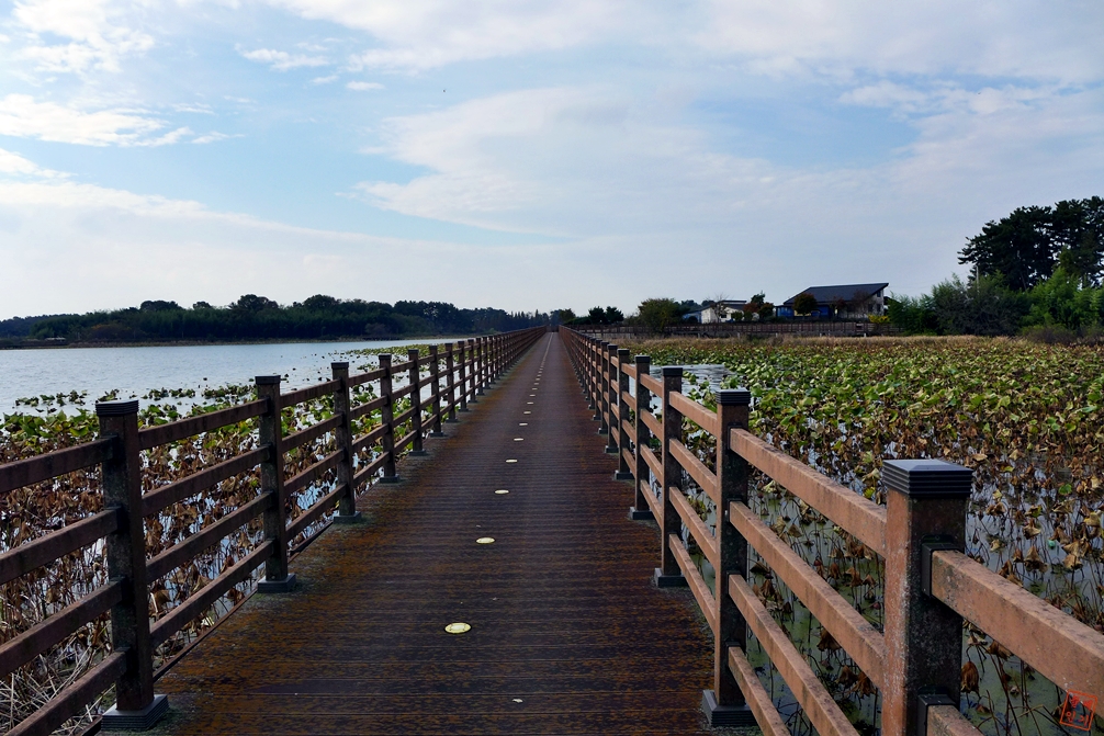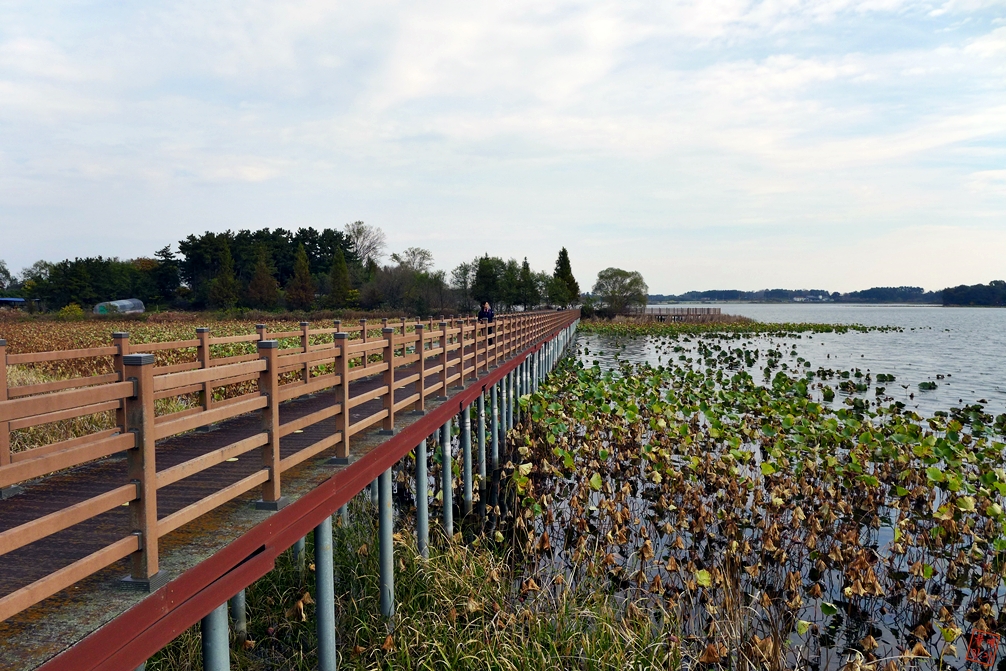 능제저수지 데크길 사이사이에 난 갈대가 인상깊다.