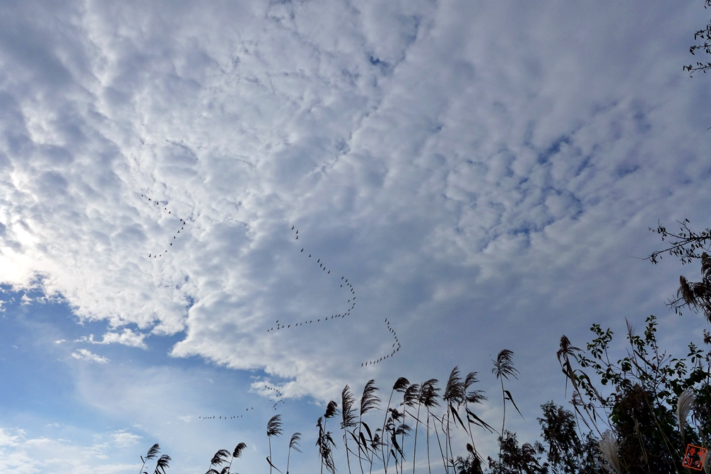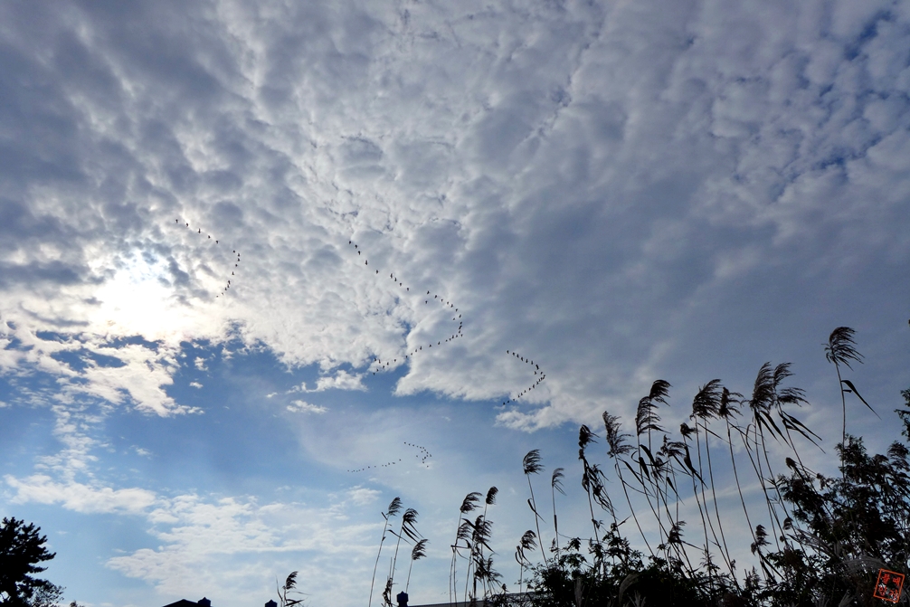 철새들이 떼를 지어 이동중인 모습이 관찰되다.