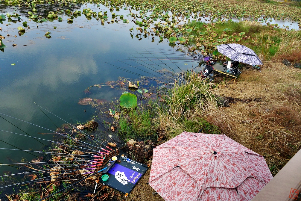 수변데크길 아래로 7~8개씩 설치된 낚시대가 자주 보인다.