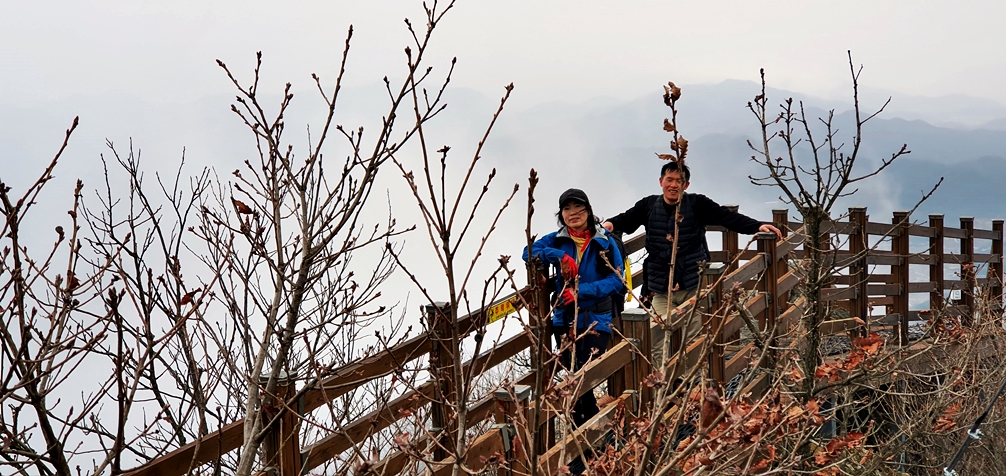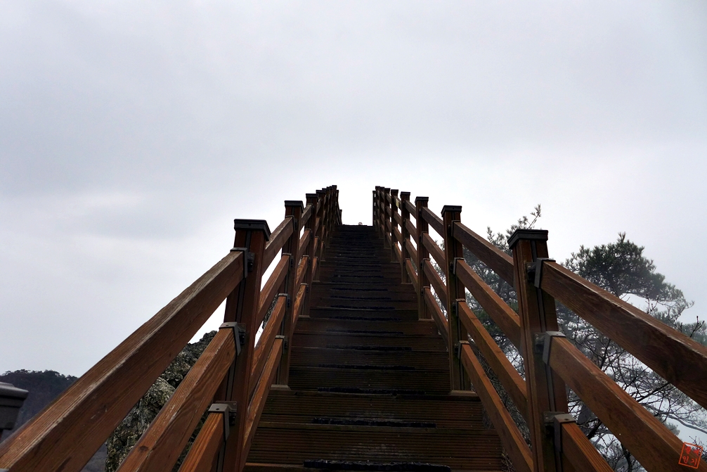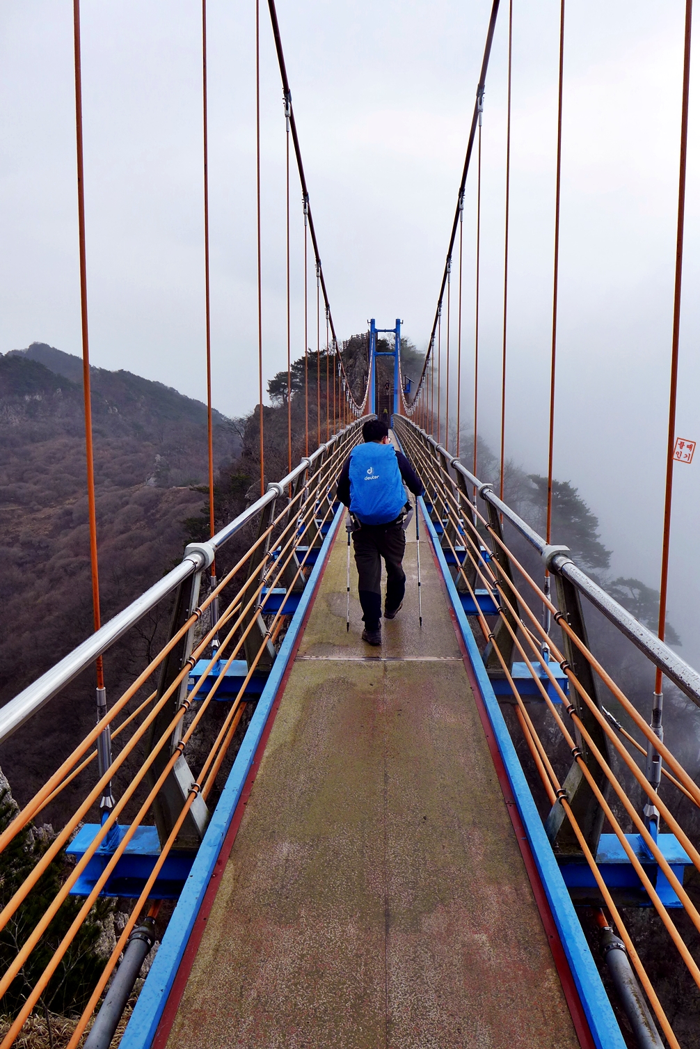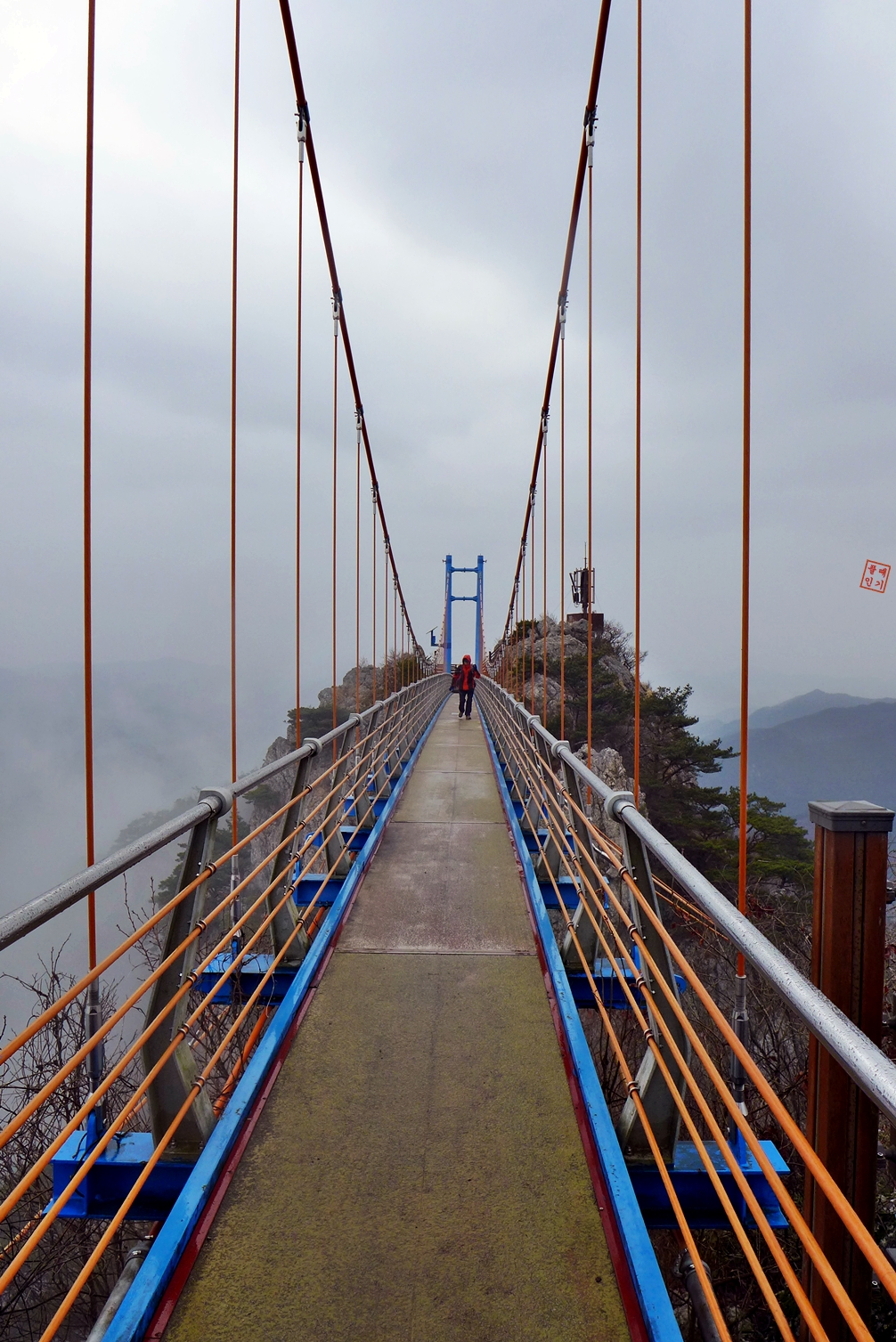 구름에 뒤덮였다가 다시 걷히는 신비로운 하늘다리.