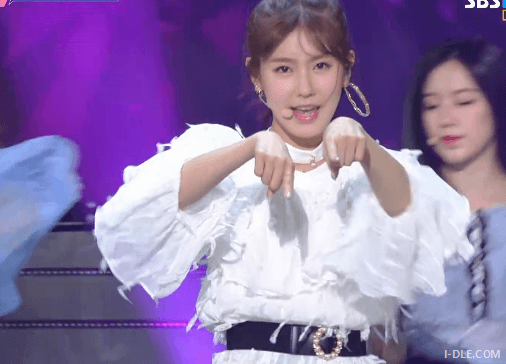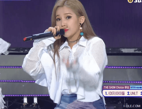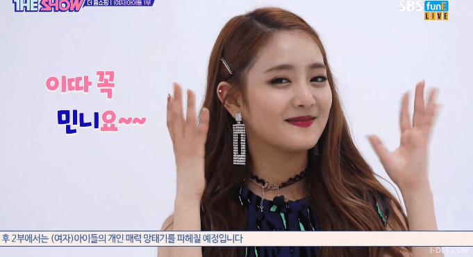 (여자)아이들 멤버들중 맏언니지만 나이에 비해 꽤 동안으로 보임 (개인생각)
