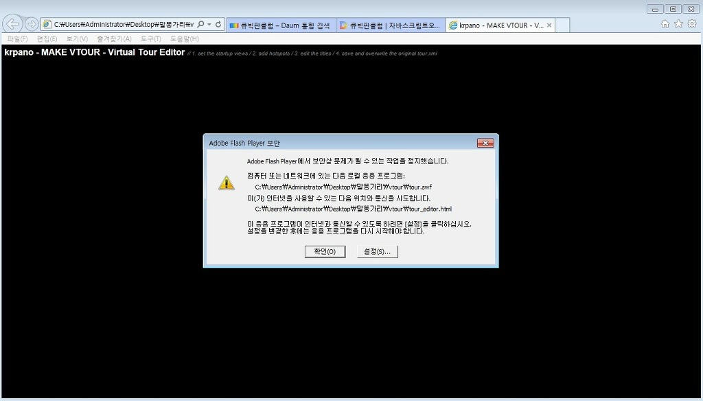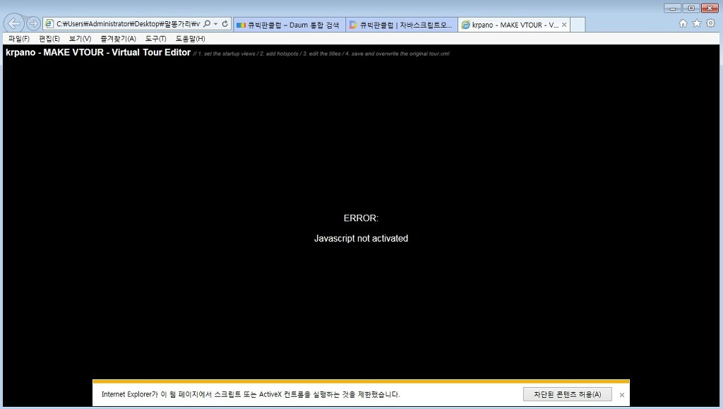 2. vtour폴더 생성후 tour_editor.html을 익스플로러로 켰을때