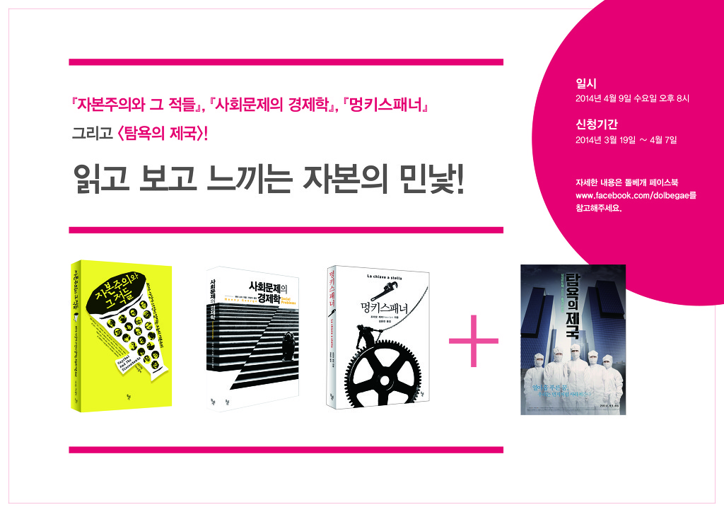 4월엔 영화 <탐욕의 제국> 책은 <자본주의와 그 적들><사회문제의 경제학> <멍키스패너> 중 택1