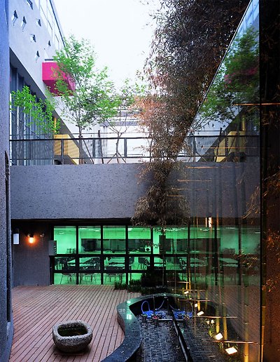 인공적으로 형성된 공원과 자연적으로 형성된 하천 사이에 위치하는 대지의 성격상 건물은 그 두 자연의 흐름을 연결시키고자 했다. 커튼월로 된 2층 높이의 투명한 홀 공간이 이러한 의도를 반영한 것이다. ‘공원(외부)-공원쪽 마당(내부화된 외부)-투명한 홀(외부화된 내부)-하천쪽 마당(내부화된 외부)-하천(외부)’라는 외부/내부 공간의 연계와 더불어 지하의 선큰 정원은 이러한 흐름을 건물의 최하부까지 끌어들이고자 한 것이다.
