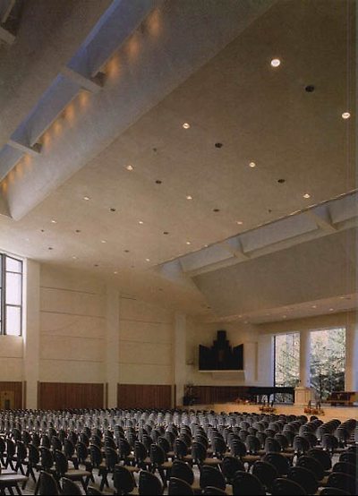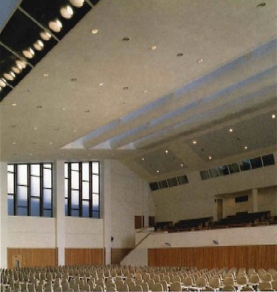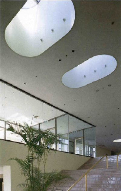 계획에 있어서도 하나의 주안점은 어느공간이나 밝고 환하게 하려고 하였다. 특히, 3동의 연결부위인 강당 앞부분 홀의 연속된천창은 낮에 불을 켜지않아도 되는 것뿐만 아니라 빛에대한 숙연함을 느끼게 한다. 식당 전면 부분을 치올려 내부 깊숙한 곳까지 들어오도록 하였다.