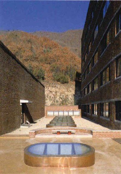 측량을 하고 대지모형을 만든 후, 계획에 임하게 되었는데 전체9000여평에서 유효적절하게 대지로 이용할 수 있는 면적은 3,000평 이었다. 흡사 은행잎 모양의 대지에서 줄기에 해당하는 끝부분에 연면적 4,300평 규모의 건물이 들어앉게 된 것이다. 1,000명이 동시에 숙박할 수 있는 숙소동과 320명이 이용하는 식당, 그리고 숙박인원 전부를 소화하는 강당을 결합하는 것이었다. 그리고 이들과 같이 로비, 복도, 라운지등으로 전체 구성을 이루고 있다.