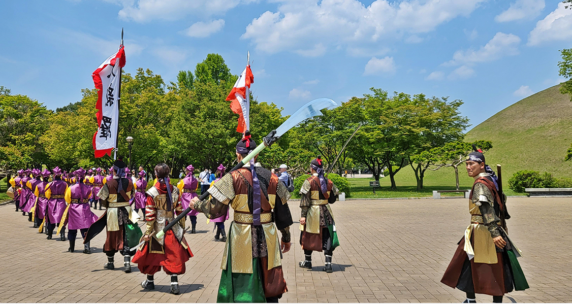 고증을 거쳐 복원된 고취대 공연이 4월 중순에 첫 공연을 시작해 6월 중순까지 '경주의 풍류'라는 이름으로 대릉원 일원에서 펼쳐집니다. 고취대의 퍼레이드를 시작으로 대릉원 내 광장에서 퍼포먼스가 마련되고 연계 공연도 함께 펼쳐집니다.