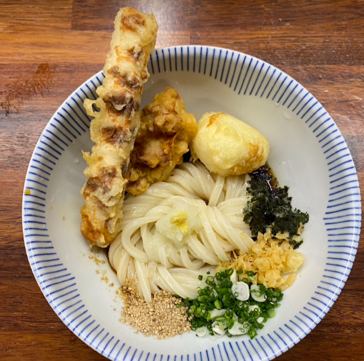 진한 간장 육수를 부어 먹는 간장비빔우동 대표메뉴로 화학조미료를 쓰지 않는 쯔유와 육수가 쫄깃 탱글한 면발과 깊게 어우러집니다. 또한 이곳은 튀김 맛집으로 바삭하게 튀겨진 우엉, 채소, 어묵튀김을 우동과 곁들여 먹기 좋습니다.
