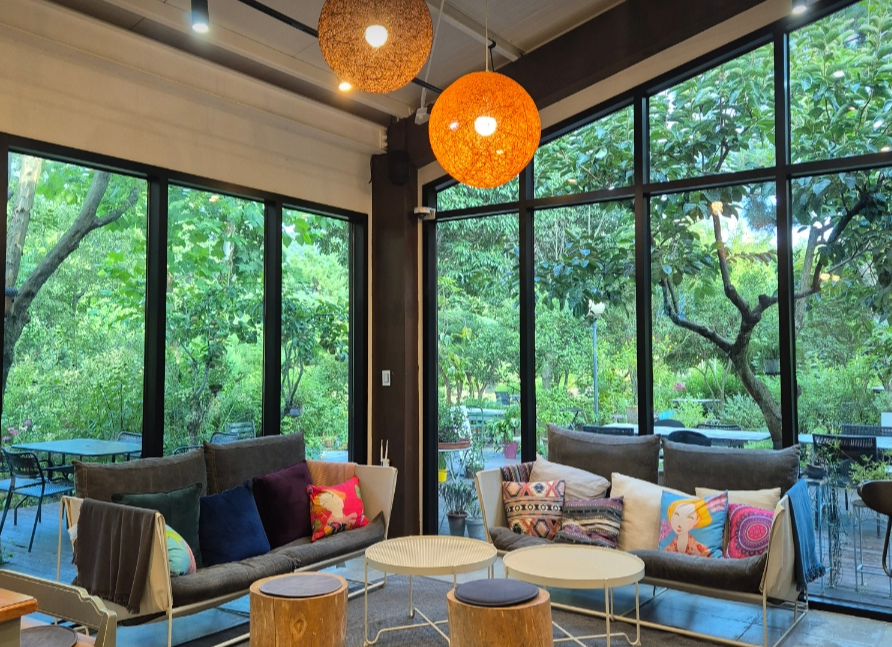 카페 내부도 유리 온실이 연상되는 곳으로 눈길 가는 곳마다 식물을 만날 수 있게 대부분이 유리창으로 되어 있습니다. 커피와 전통차, 직접 구운 디저트가 맛있으며, 특히 지역 농가와 협업하여 우리 농산물을 활용한 디저트를 내어놓는 점이 인상적입니다.