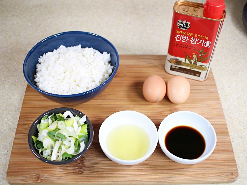 재료는 밥, 계란, 대파, 간장, 참기름, 식용유 준비해주세요.