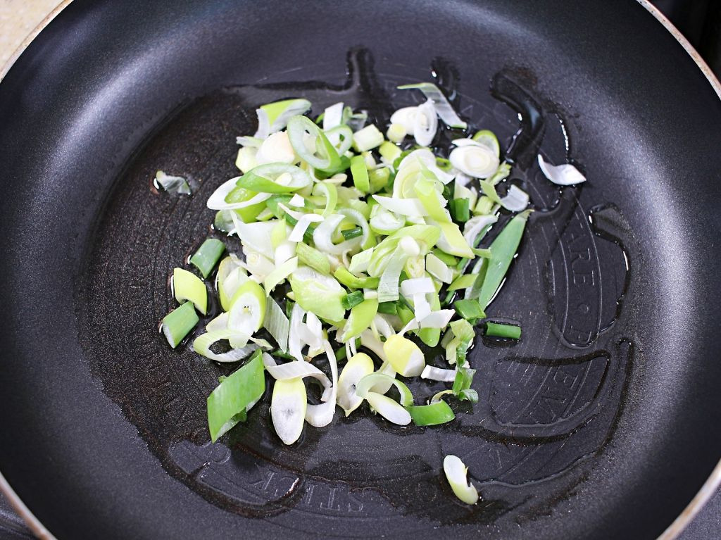 송송 썬 대파를 볶아서 파기름을 만들어요.