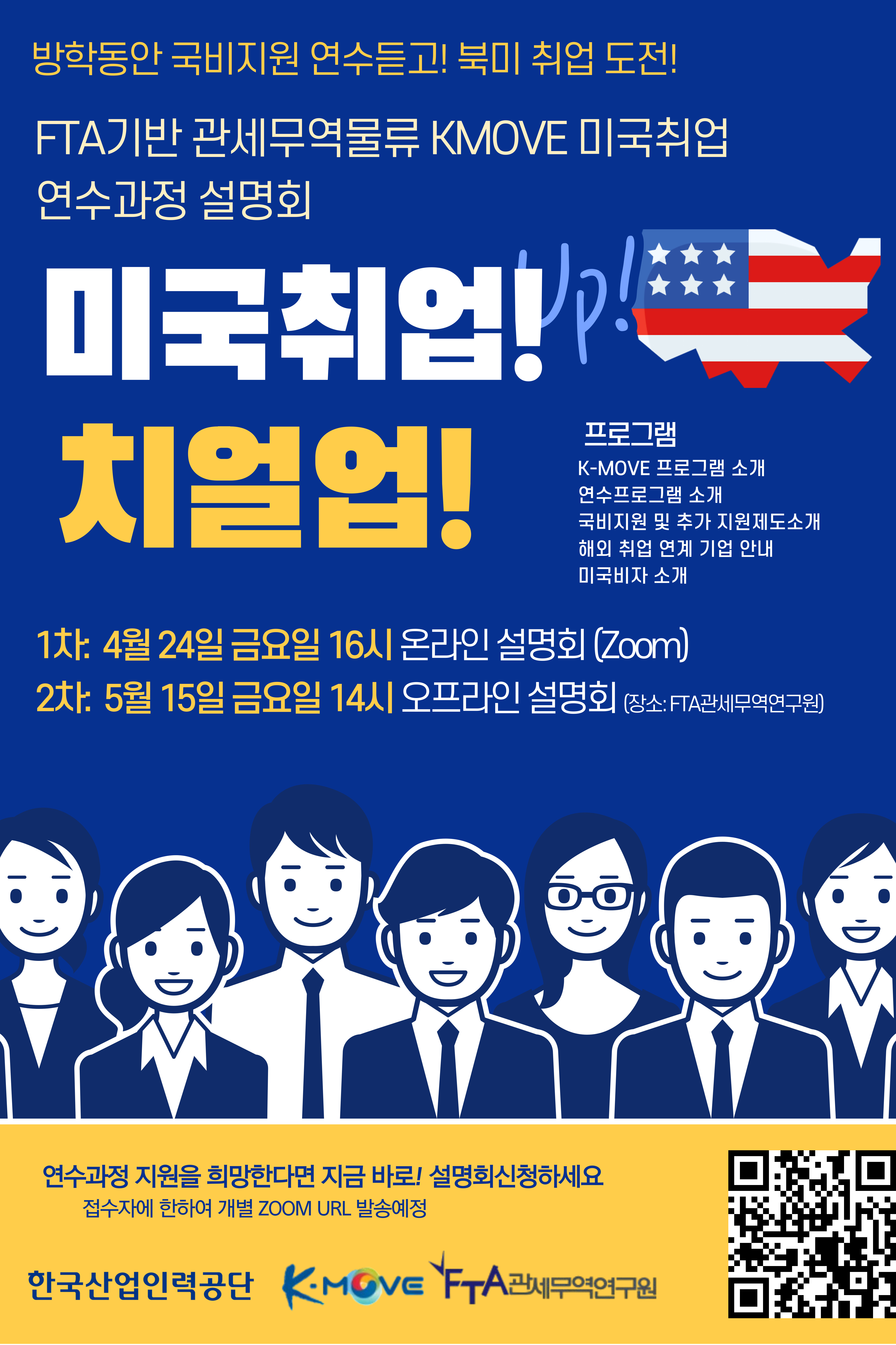 한국산업인력공단에서 지원하는 FTA관세무역물류 미국 인턴/취업 연계과정은 전문적인 어학 교육과 무역실무 중심의 교육을 받으며, 현지 대기업/중견 기업의 해외 법인 및 현지 기업에 취업 연계까지 진행되는 과정입니다.
