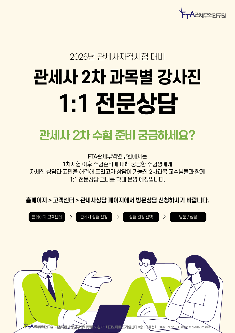 ● 상담신청 방법 : 로그인 > 고객센터 > 관세사상담/신청내역 > 상담일, 상담강사, 시간 선택 후 상담내용 입력 > 신청 접수