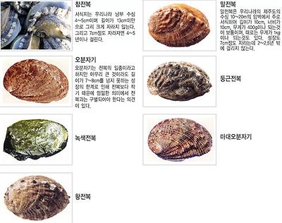 우리나라 바닷속에 살고 있는 전복의 종류를 열거하면 아래와 같다.