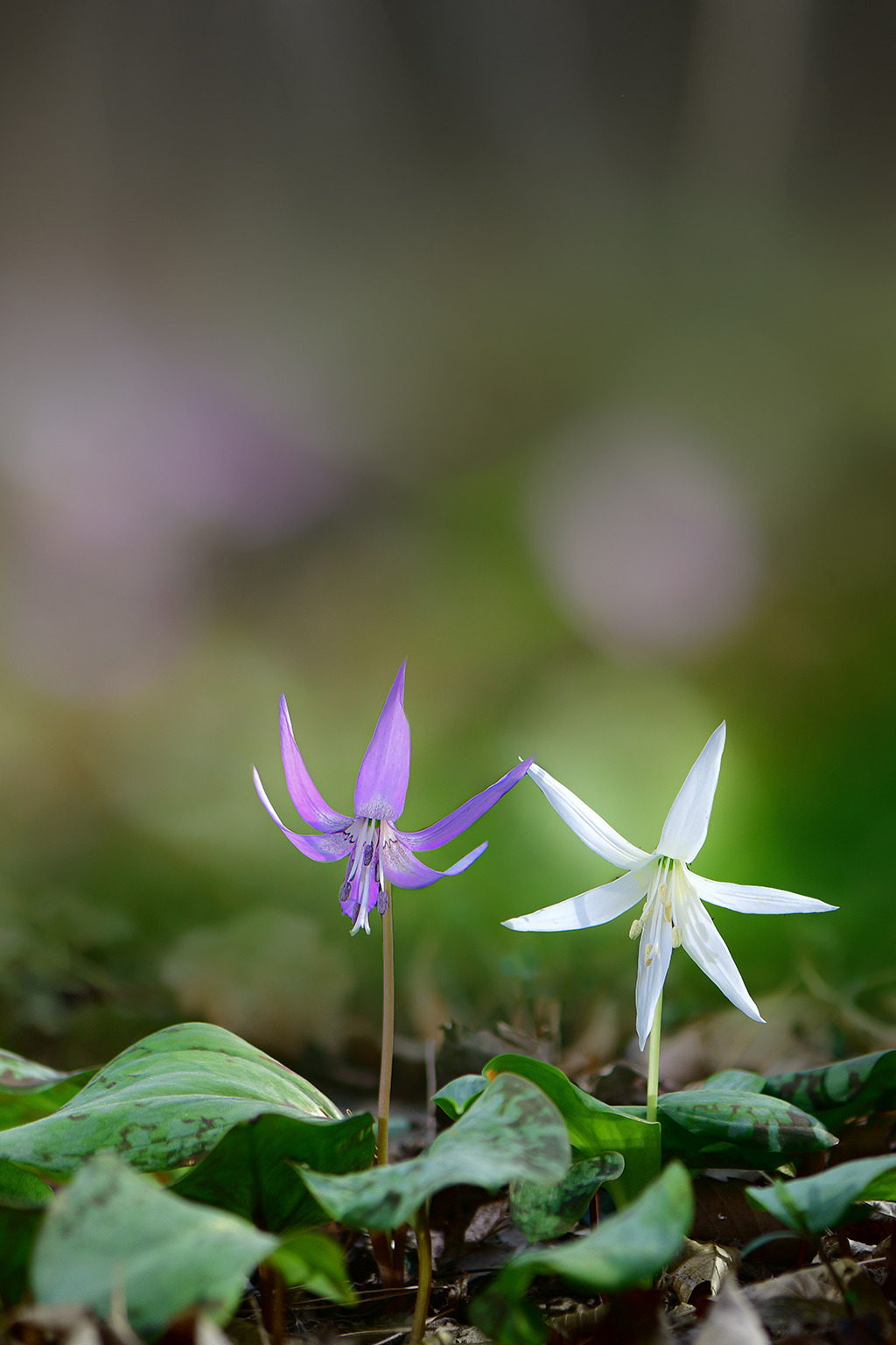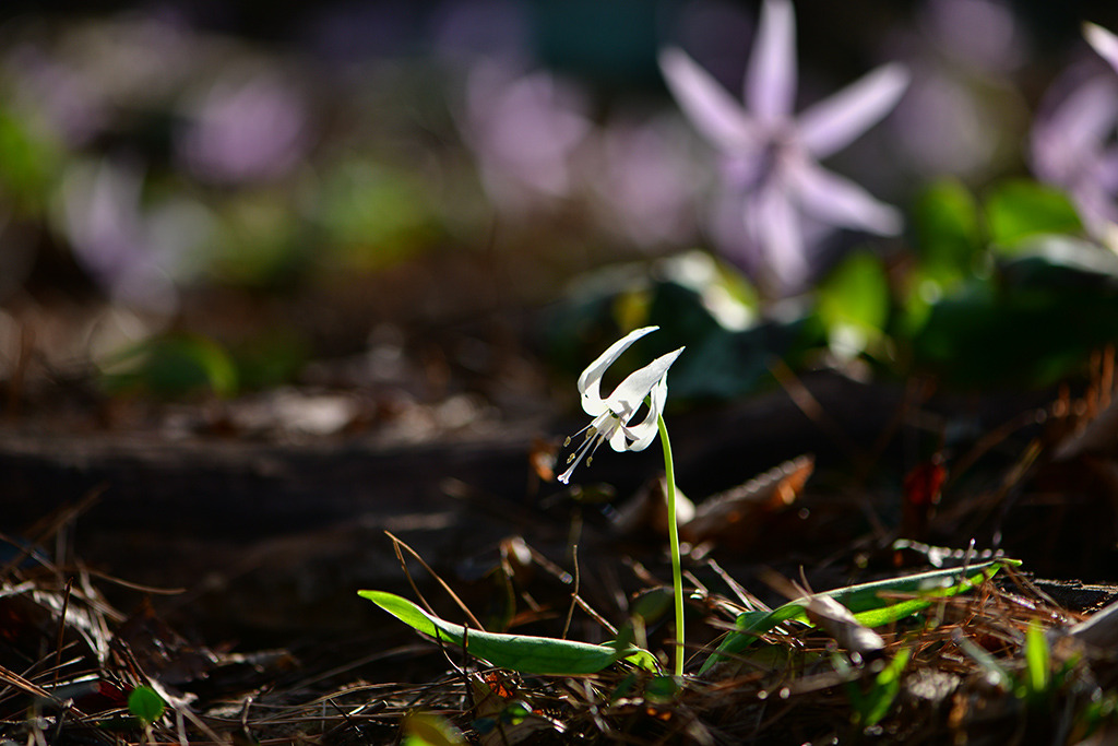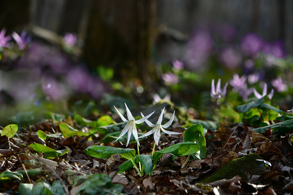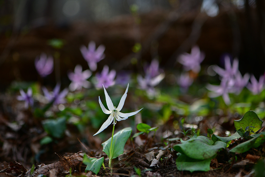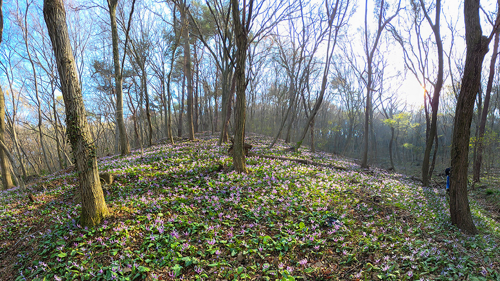 미륵산 흰얼레지 억만 송이 얼레지들이 석양을 품고 재발화한 저토록 거대한 생명의 군락은 인간의 언어를 초월하여, 오직 자연만이 그려낼 수 있는 신비로운 탐미의 극치입니다. 수억 송이 꽃물결 속에서 기적처럼 마주한 한 쌍의 얼레지, 다시 태어난 그 고운 자태가 세상의 모든 사랑을 한 몸에 품었네요 |