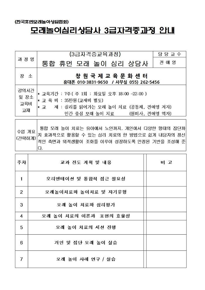 미래유망직종에 도전해보세요 ~ ` 심리상담사 자격증과정 작성자창원국제. 평생교육원|작성시간15.07.30|조회수34 목록 댓글 0 글자크기 작게가 글자크기 크게가 다음검색 현재 게시글 추가 기능 열기 북마크 공유하기 신고 센터로 신고 댓글 댓글 0 댓글쓰기 답글쓰기 댓글 리스트