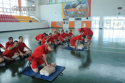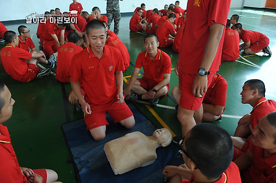 전투수영과 함께 응급상황을 대비한 전투병 생존법 교육이 진행되고 있었습니다.