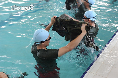 이쯤되면 전투복을 튜브 대용으로 사용해서 무지 쉬운 영법이라 생각하시겠지만!!