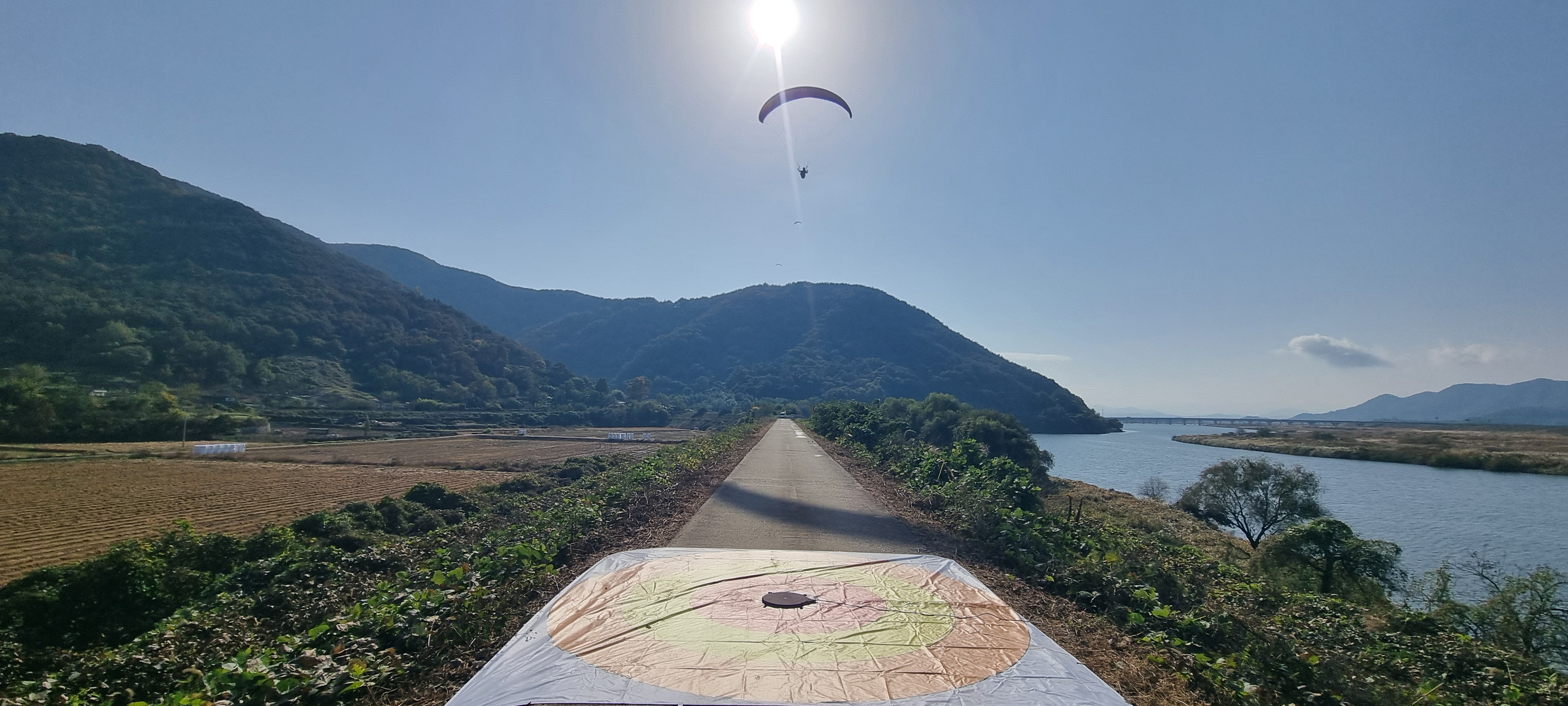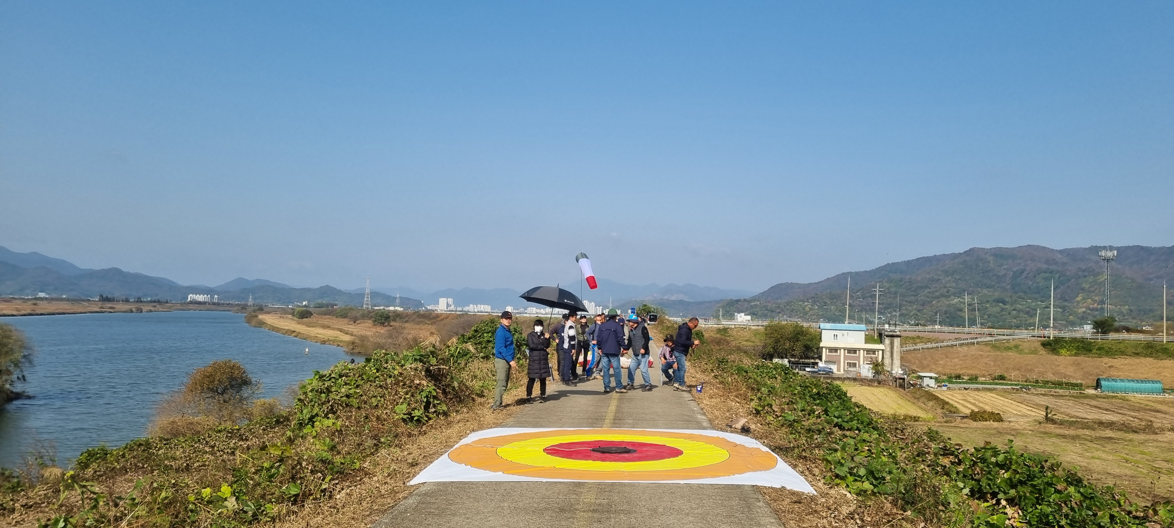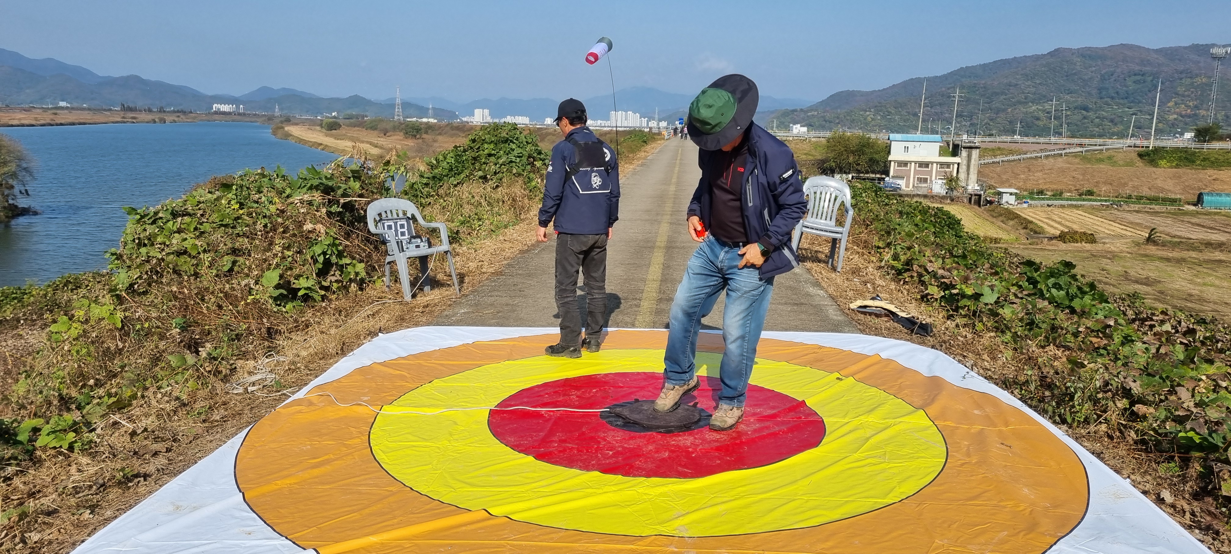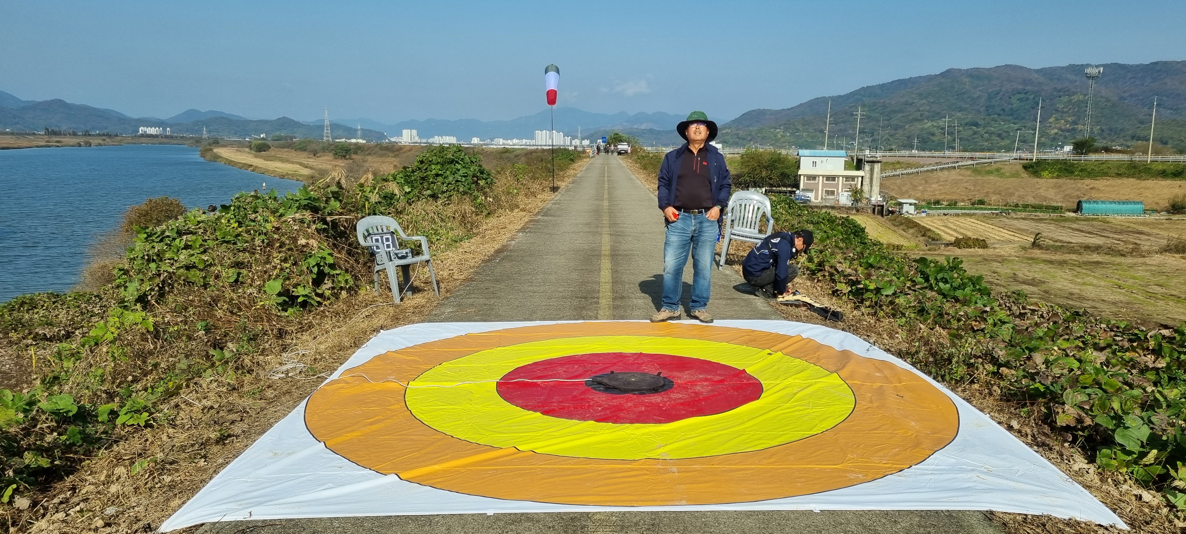 뚝방길 정밀착륙 타켓을 설치하시는 창원시 박쌍종협회장님 수고많습니다.