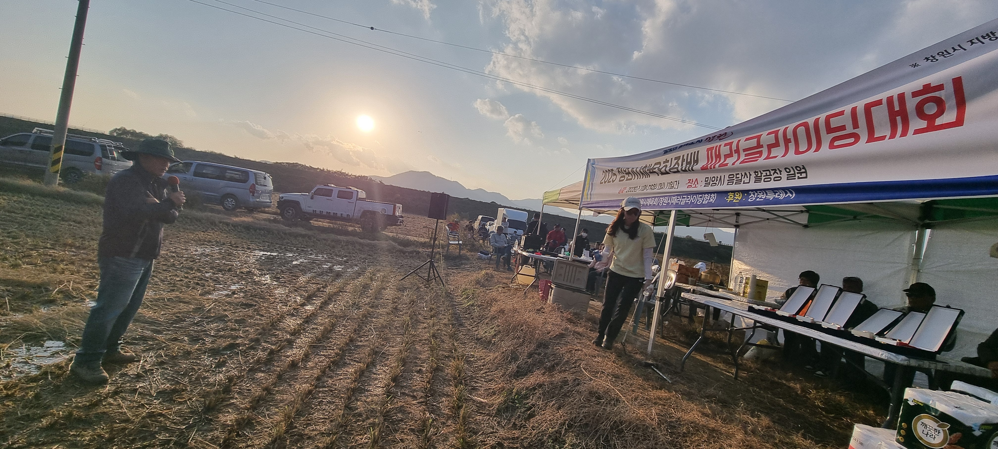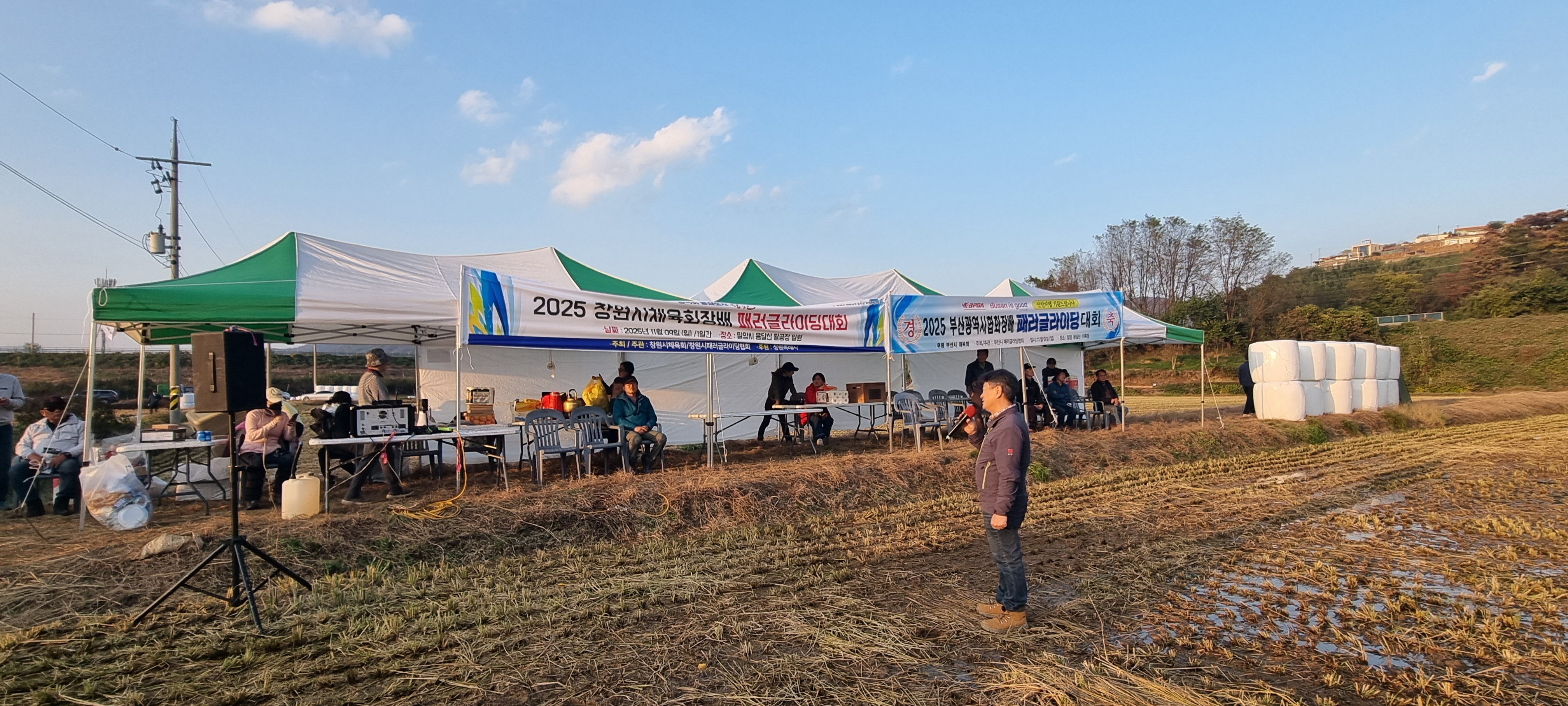 부산 노충환협회장님 폐회식 인사 말씀...뒤에 논에 물이 흥건한게 보이죠...ㅠ.ㅠ.