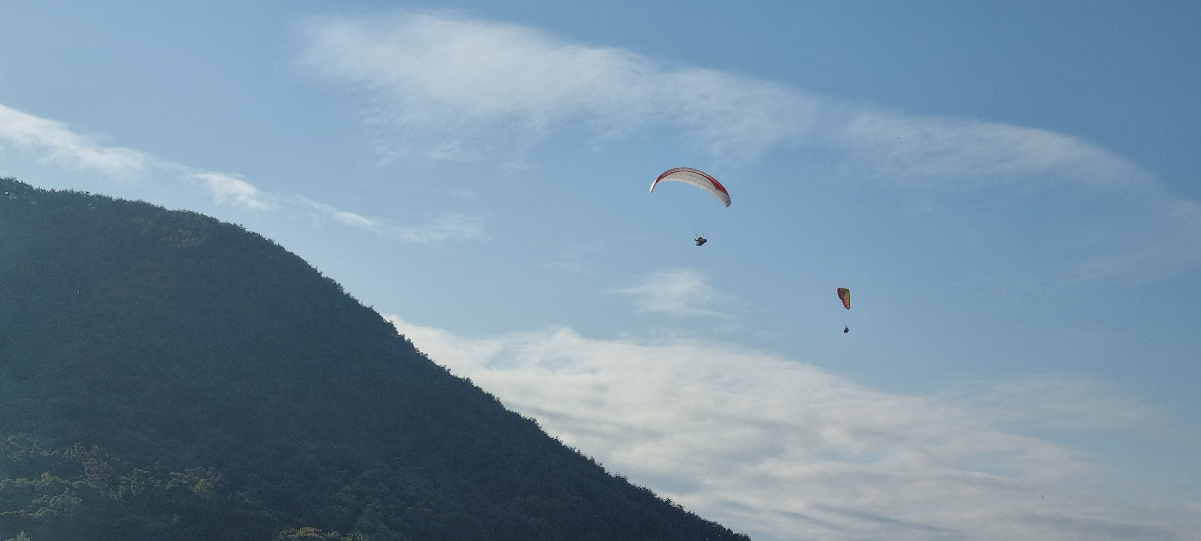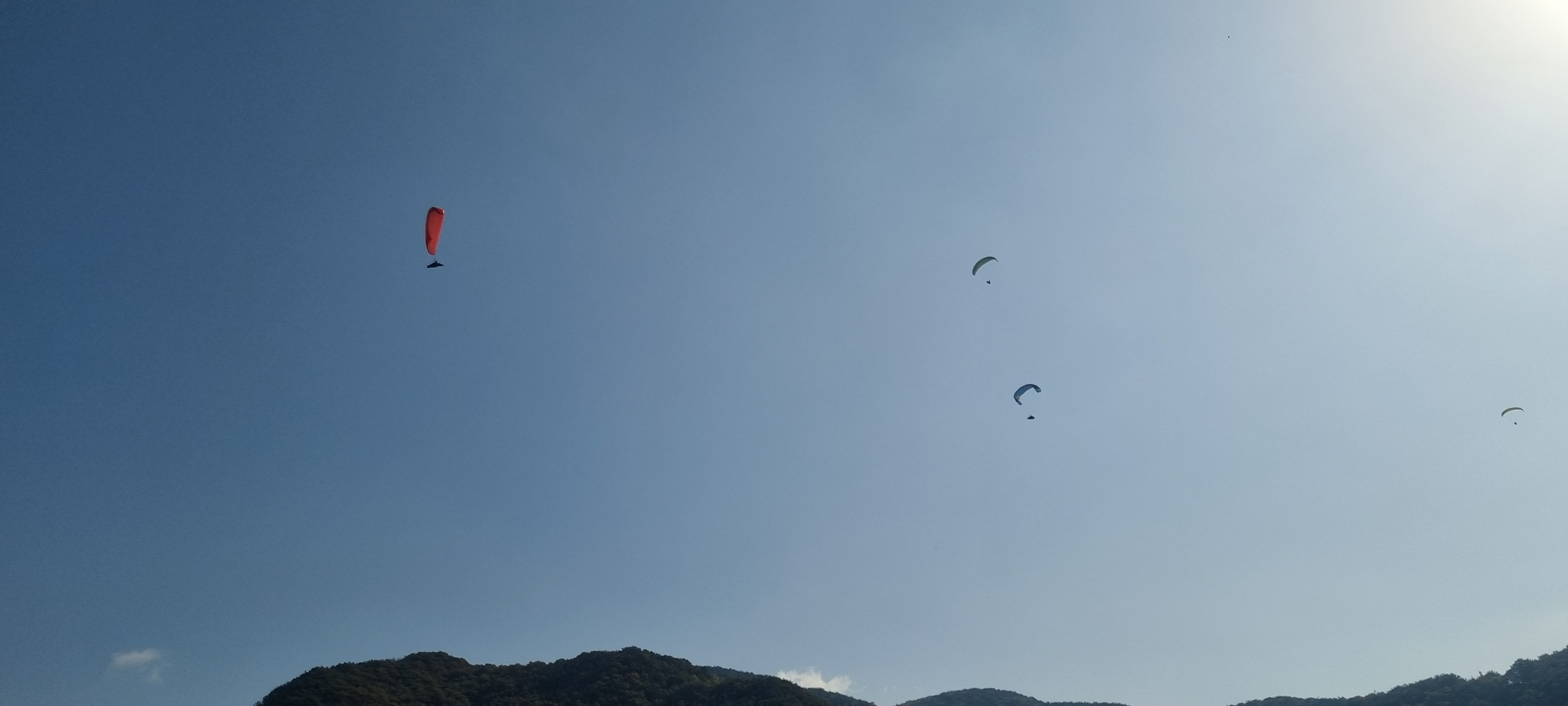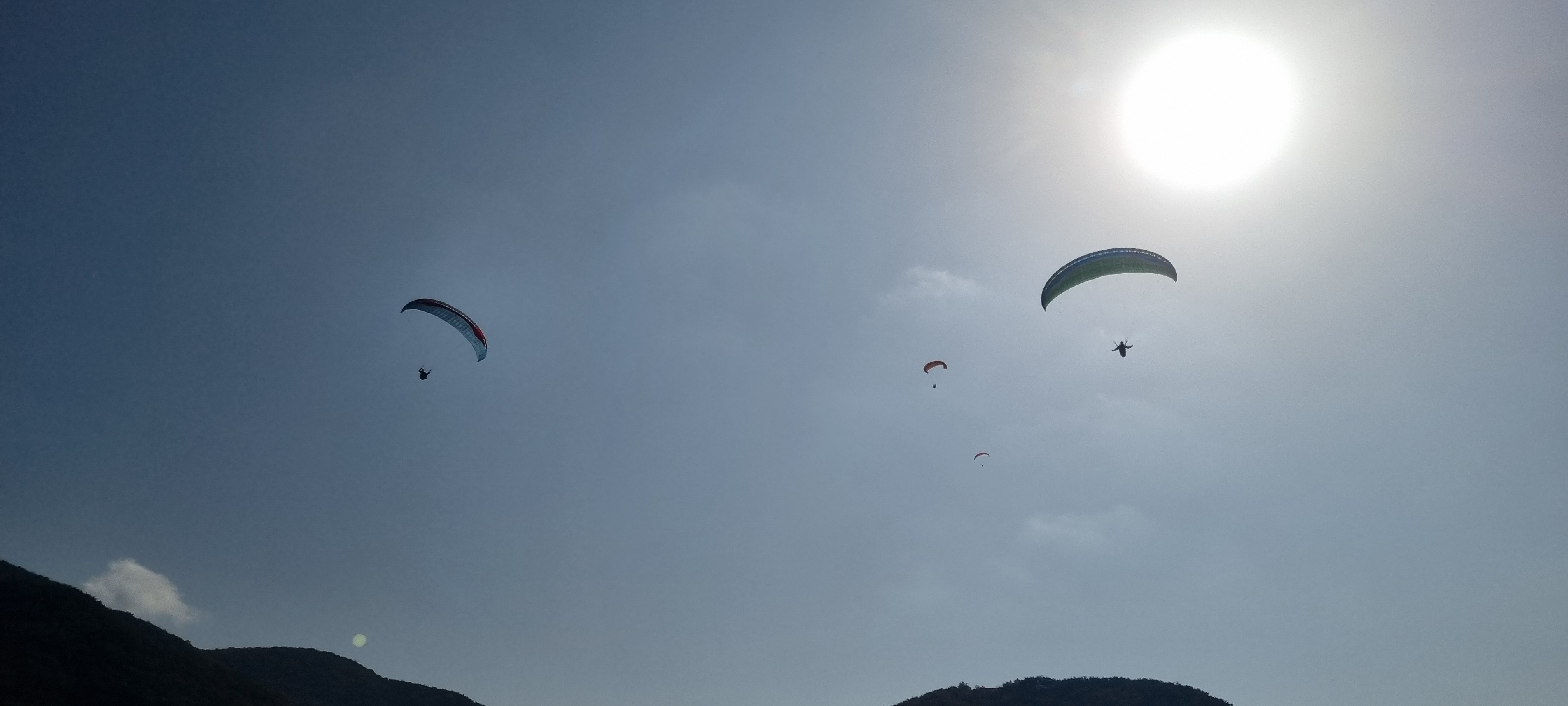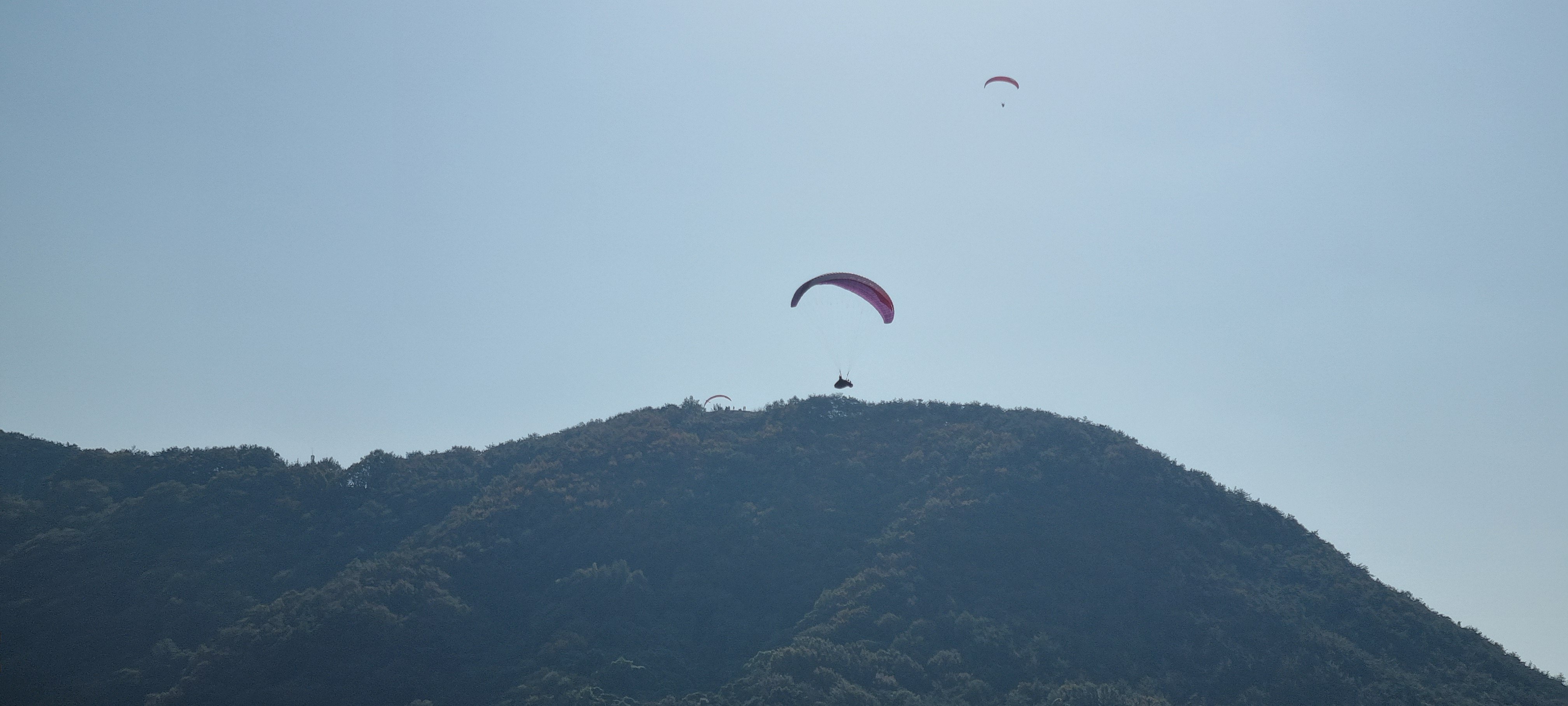 이륙장에선 선수들이 계속해서 이륙해서 나오고 있습니다.